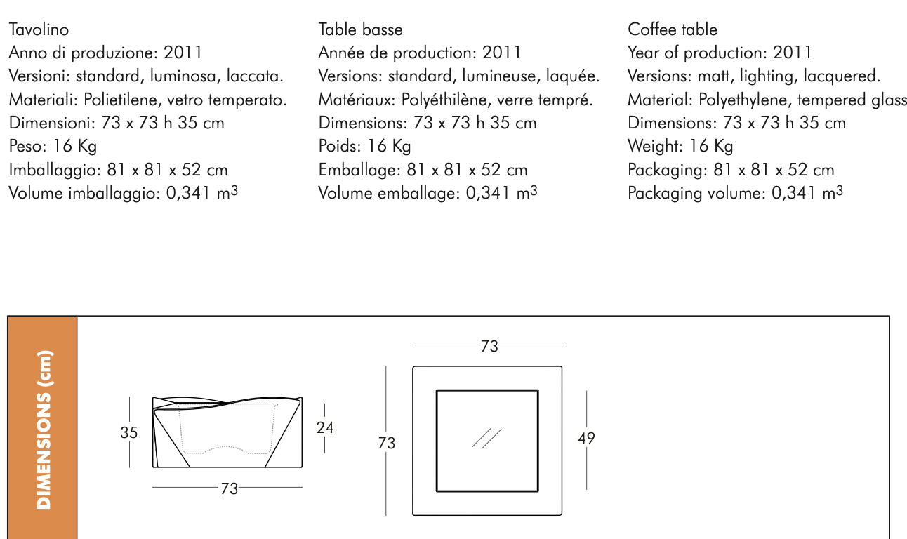 Zaprojektowana przez Marc Sadlera, zainspirowanego japońską sztuką origami, stolik KAMI NI to stolik kawowy o eleganckim, lecz nieregularnym kształcie.