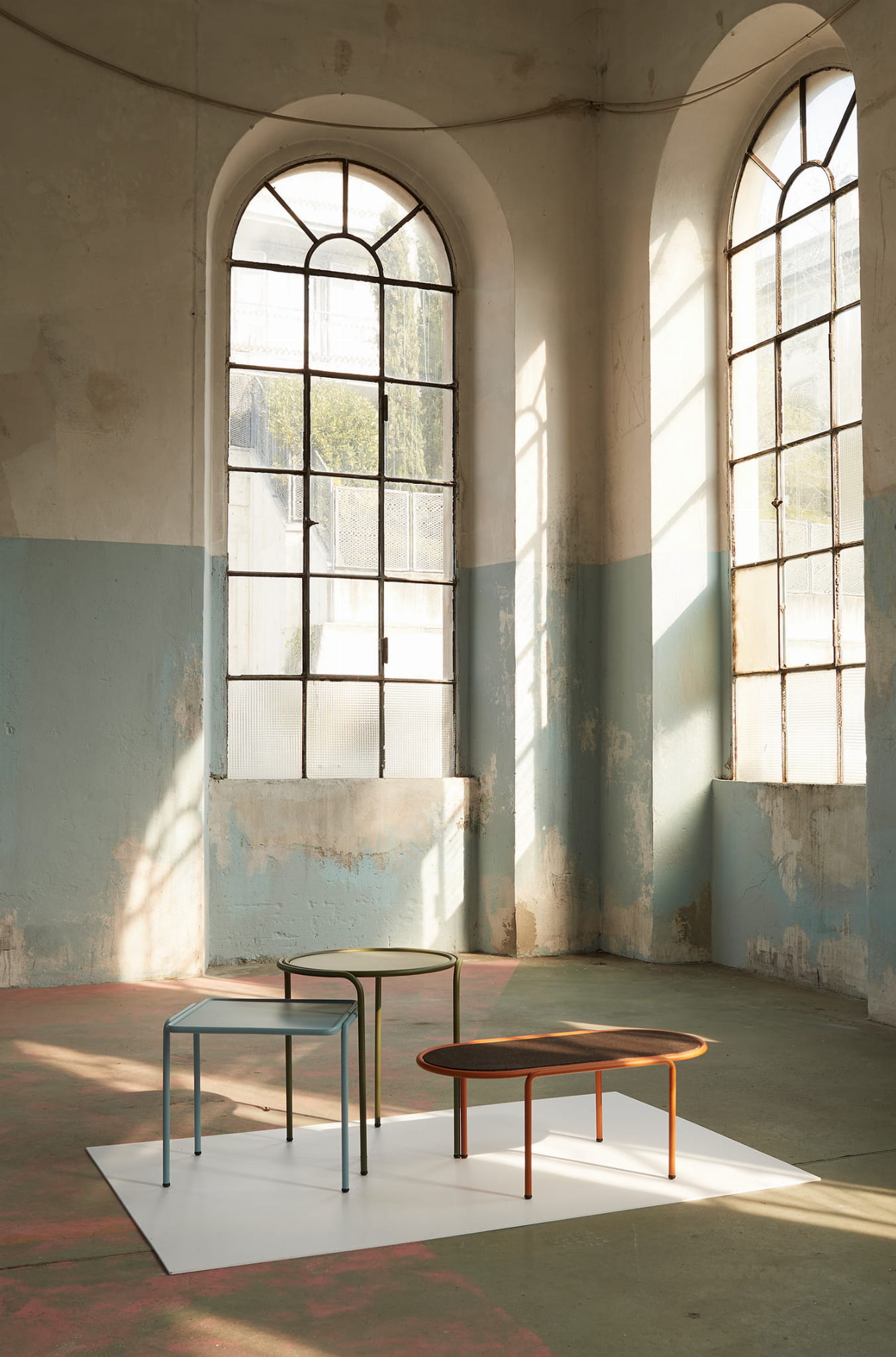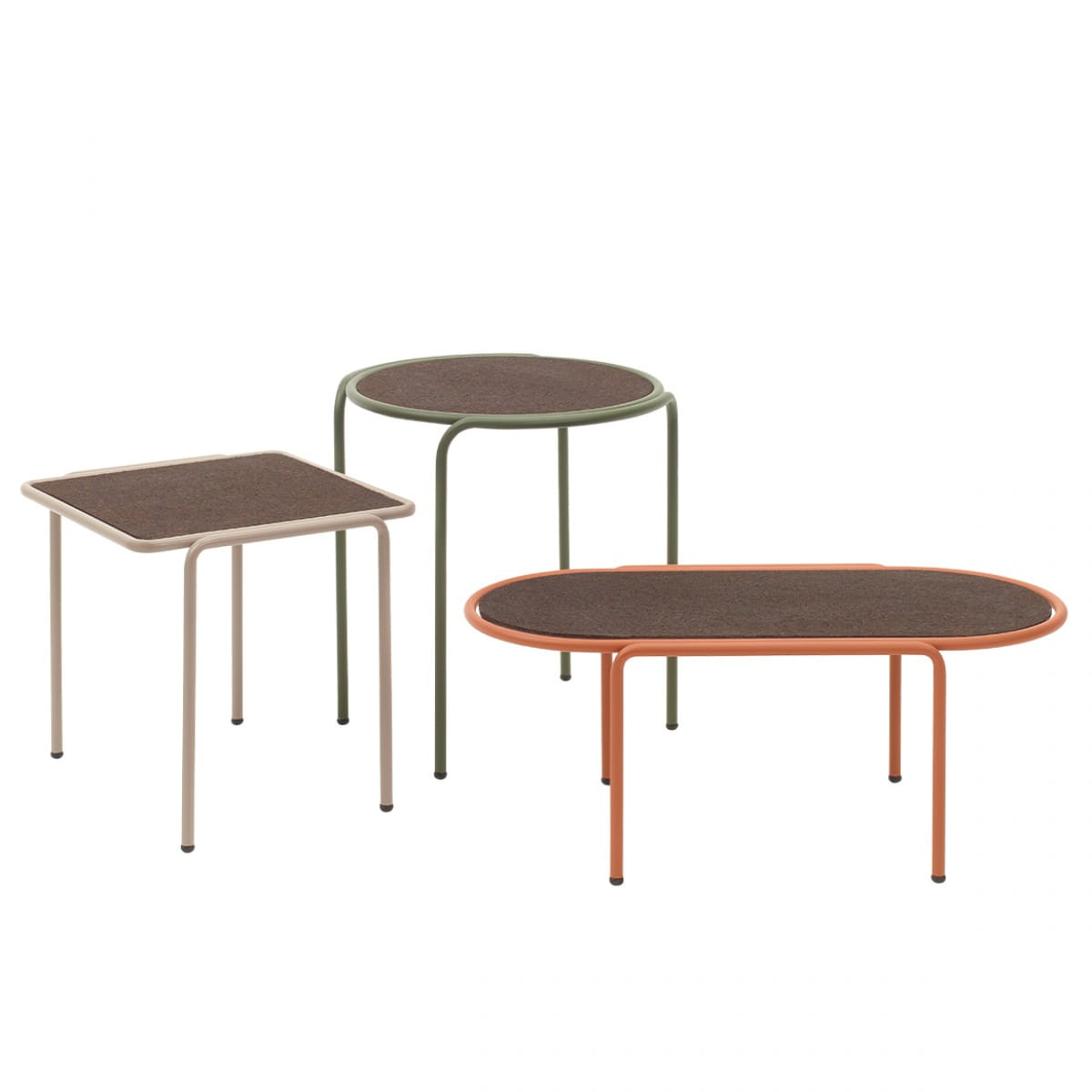 To rodzinna Stolików kawowych, codziennego użytku, ktore stosowane mogą być oddzielnie lub zestawione ze sobą różnymi kształt†mai i wysokościami, gdzie z