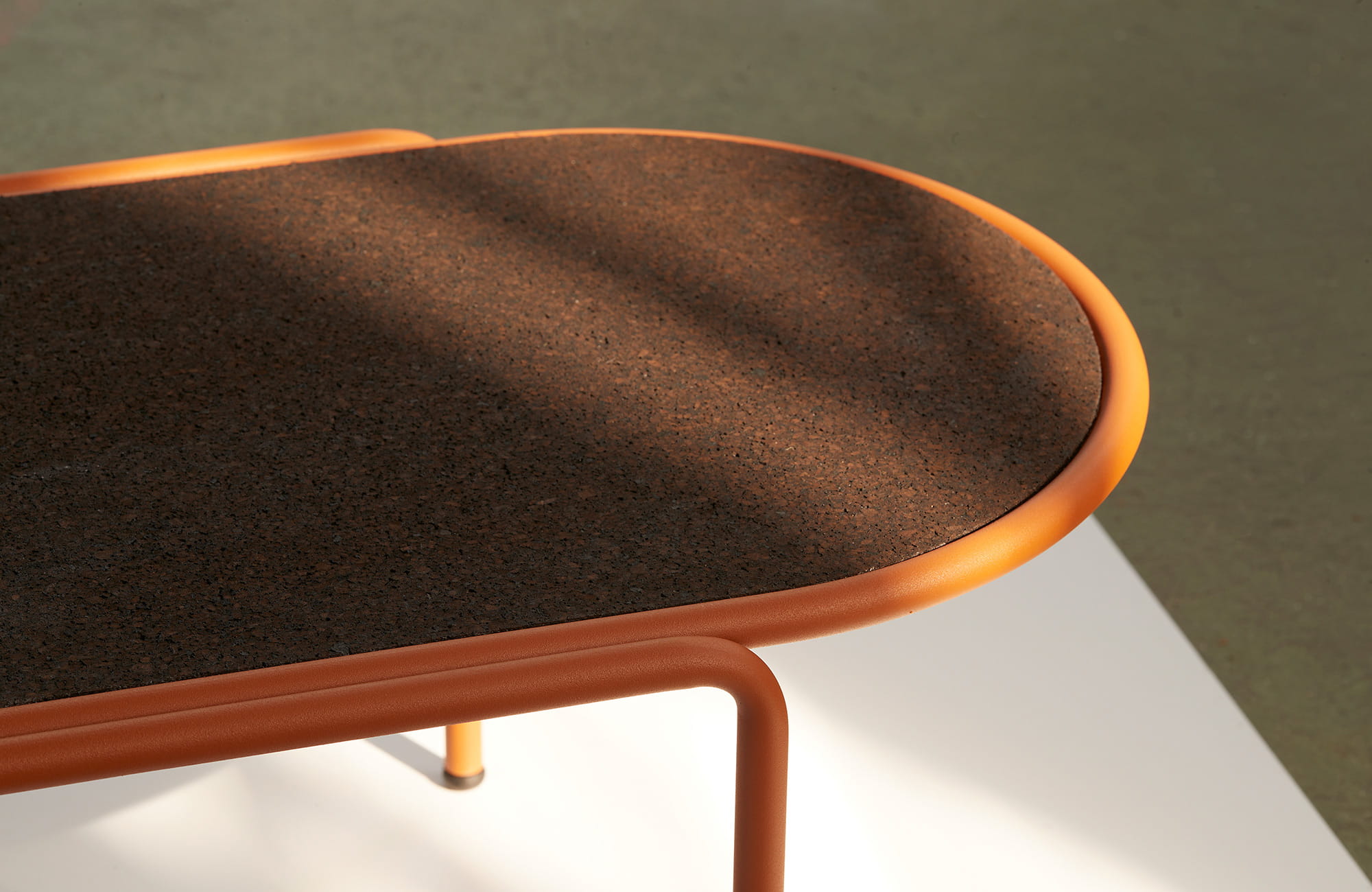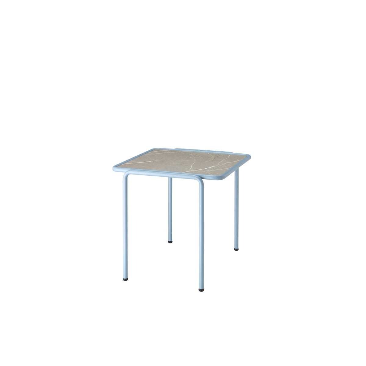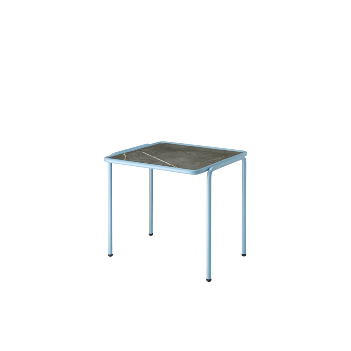 Metalowa rama złożona z rurek, wspiera blat stolików ogrodowych DRESS_CODE, który jest do wyboru w 3 wykończeniach, metalowy (w tym samym kolorze co rama)