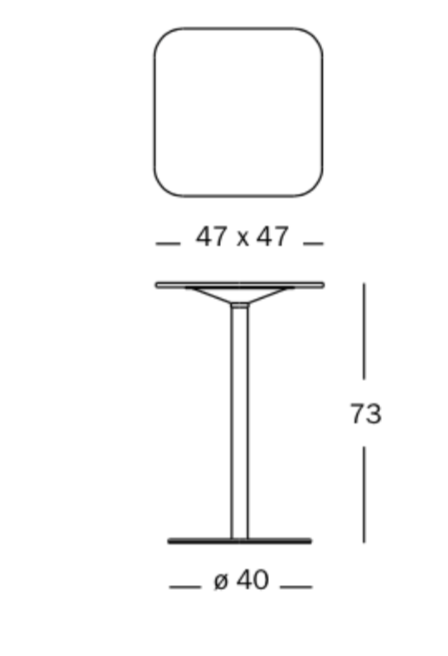 Prosty design składający się z blatu okrągłego lub kwadratu z zaokrąglonymi narożnikami
