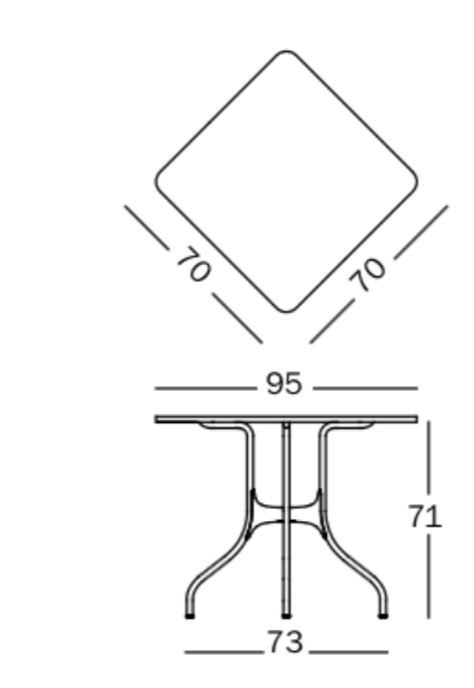 Dostępny w postaci kwadratowego blatu lub okrągłego w różnych wymiarach: śr. 70 cm/ 80 cm/ 60 cm lub