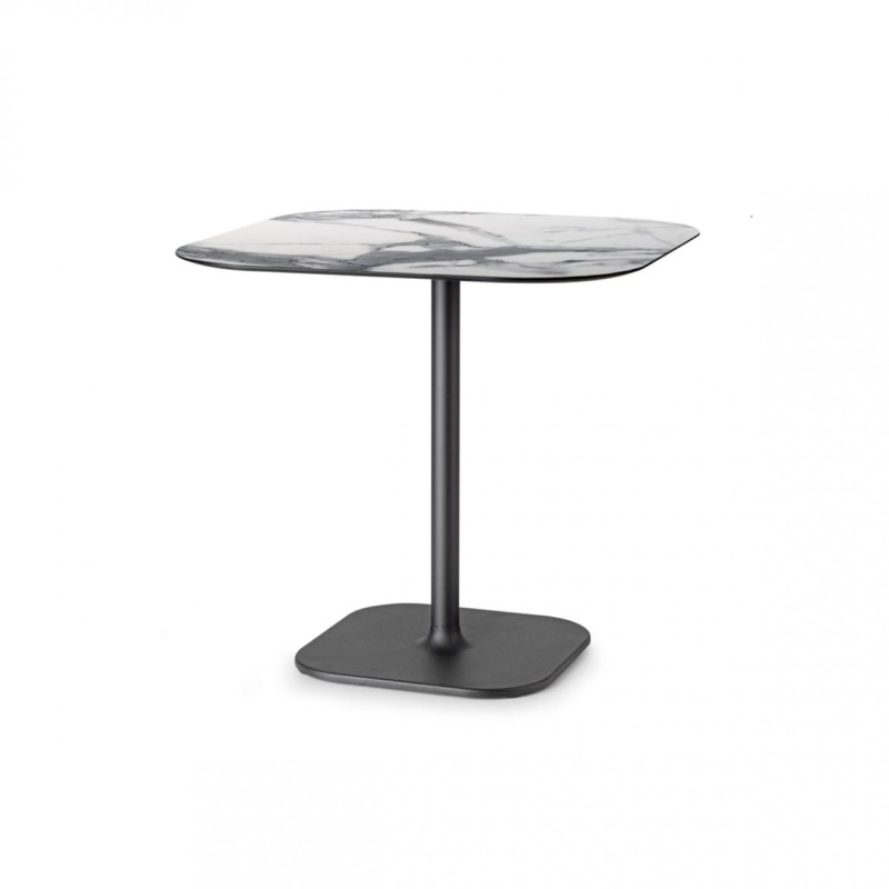 Może być połączony z blatami o różnych rozmiarach i wykończeniach. Stworzony na stabilnej nodze ze stali, z charakterystycznymi zaokrąglonymi narożnikami.