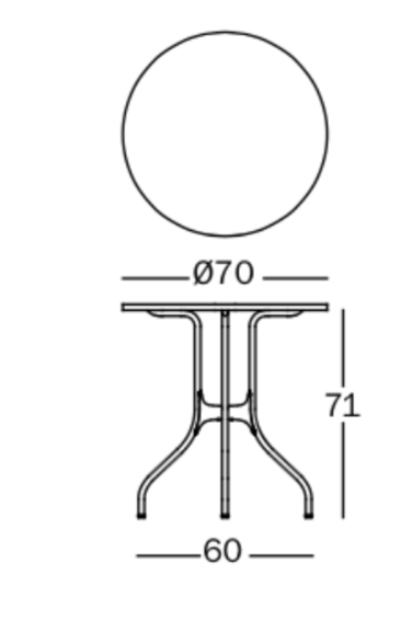 Dostępny w postaci kwadratowego blatu lub okrągłego w różnych wymiarach: śr. 70 cm/ 80 cm/ 60 cm lub
