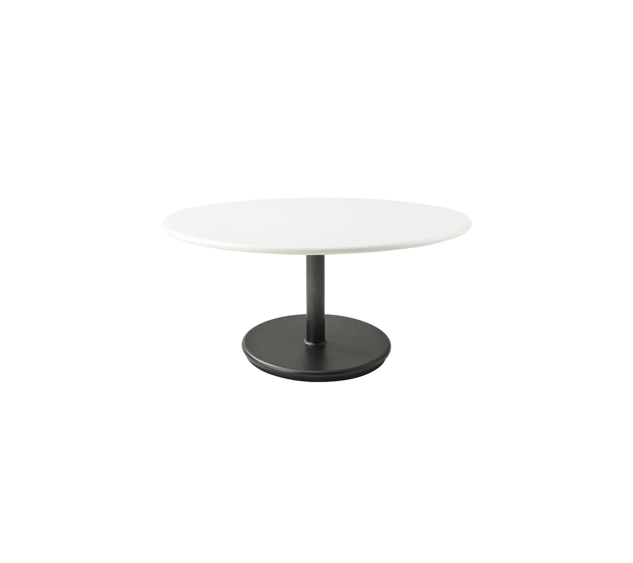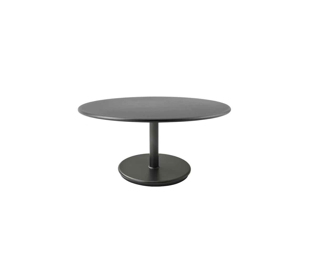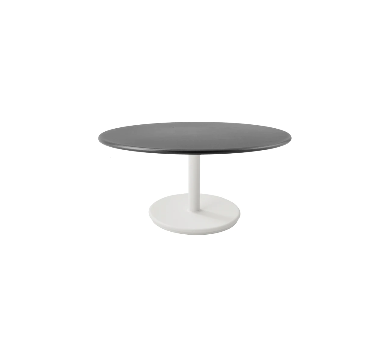 Ogrodowy stolik niski GO jest prostym i eleganckim stołem, geometryczna zabawa poprzez konstrukcje z dwóch okrągłych elementów, blatu i spodu.