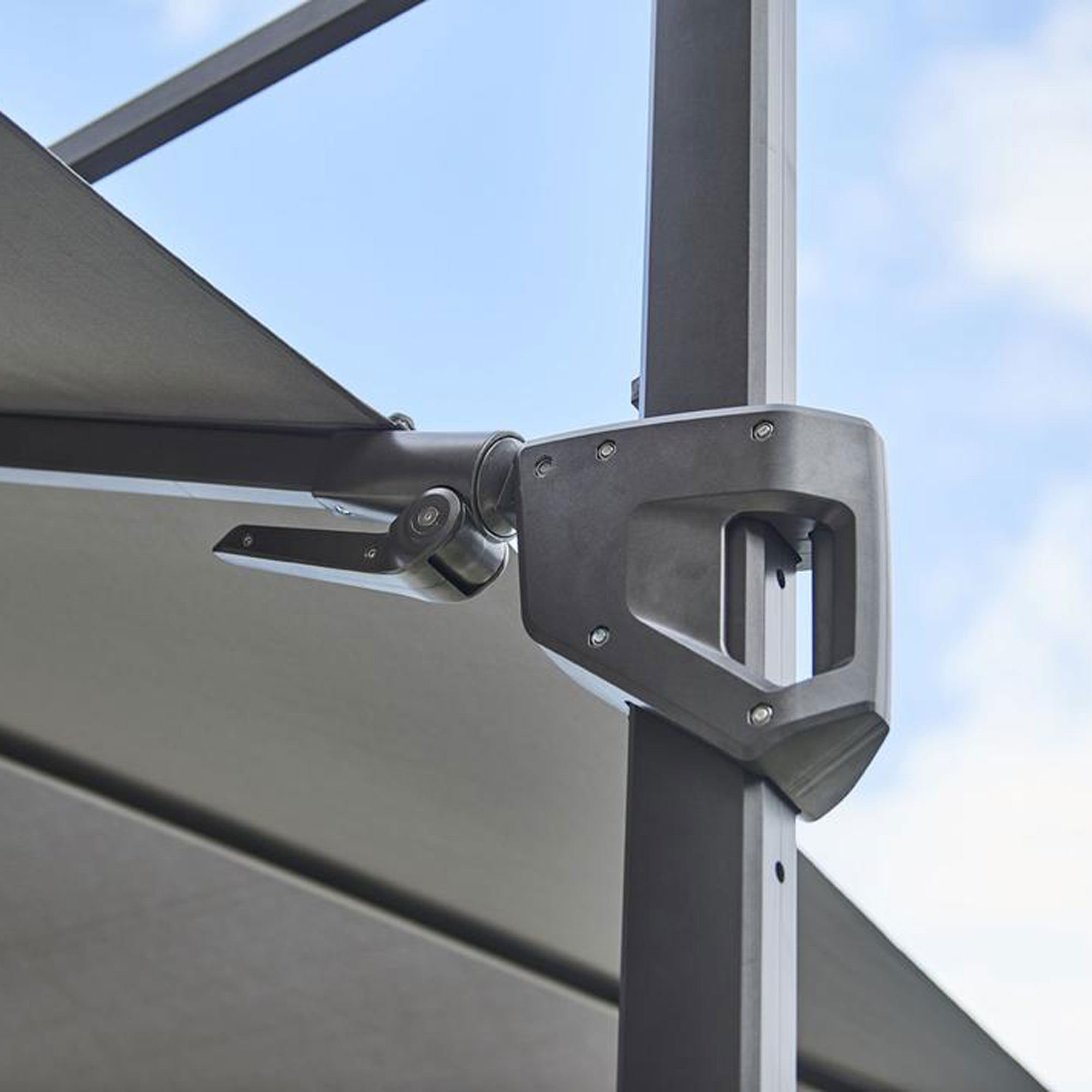 Parasol ogrodowy Hyde jest stworzony z aluminium.