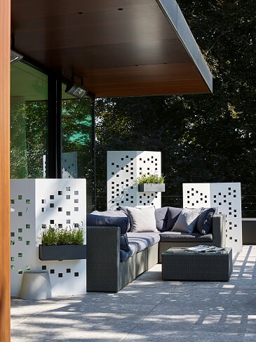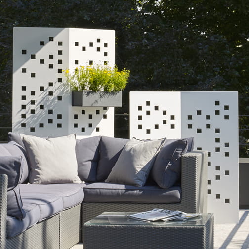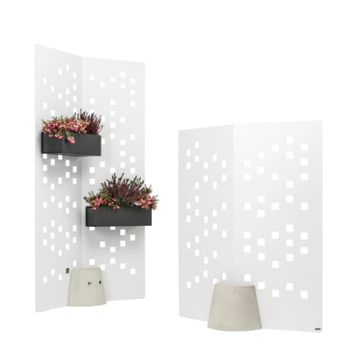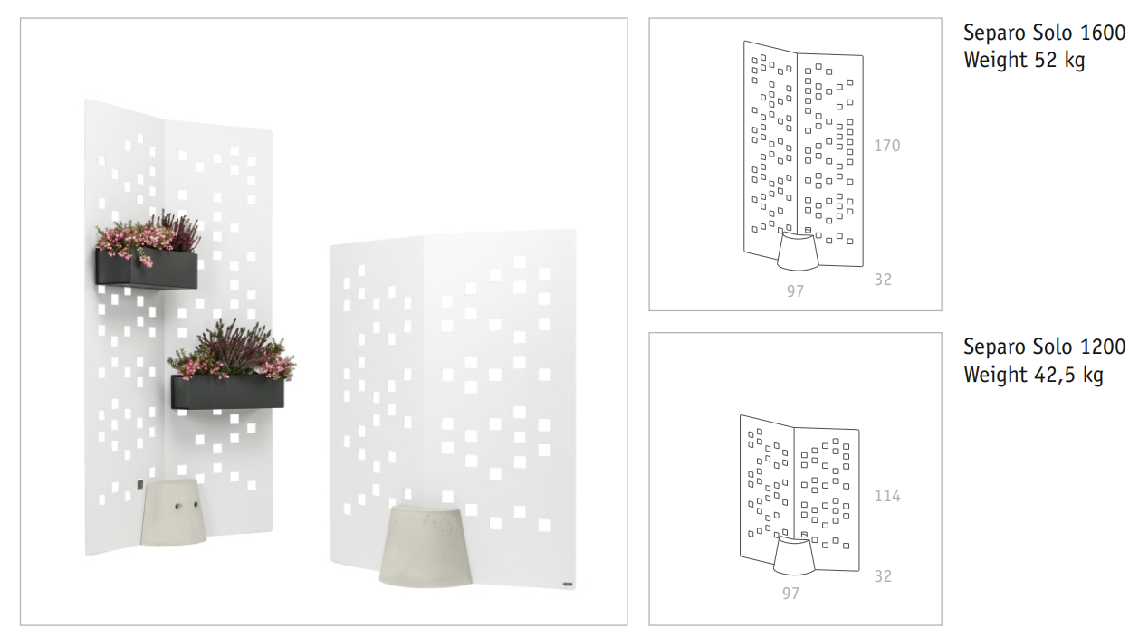 Parawan ogrodowy Separo Solo oferuje bardzo elastyczny sposób tworzenia prywatności w otoczeniu naturalnym. Dzięki betonowej podstawie elementy te mają solidną a jednocześnie elastyczną pod kątem aranżacji podstawę (nie wymaga mocowania do podłoża).