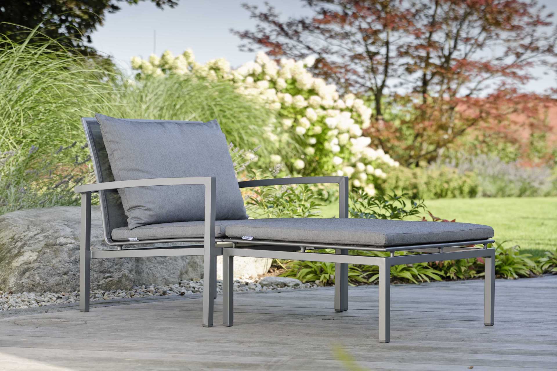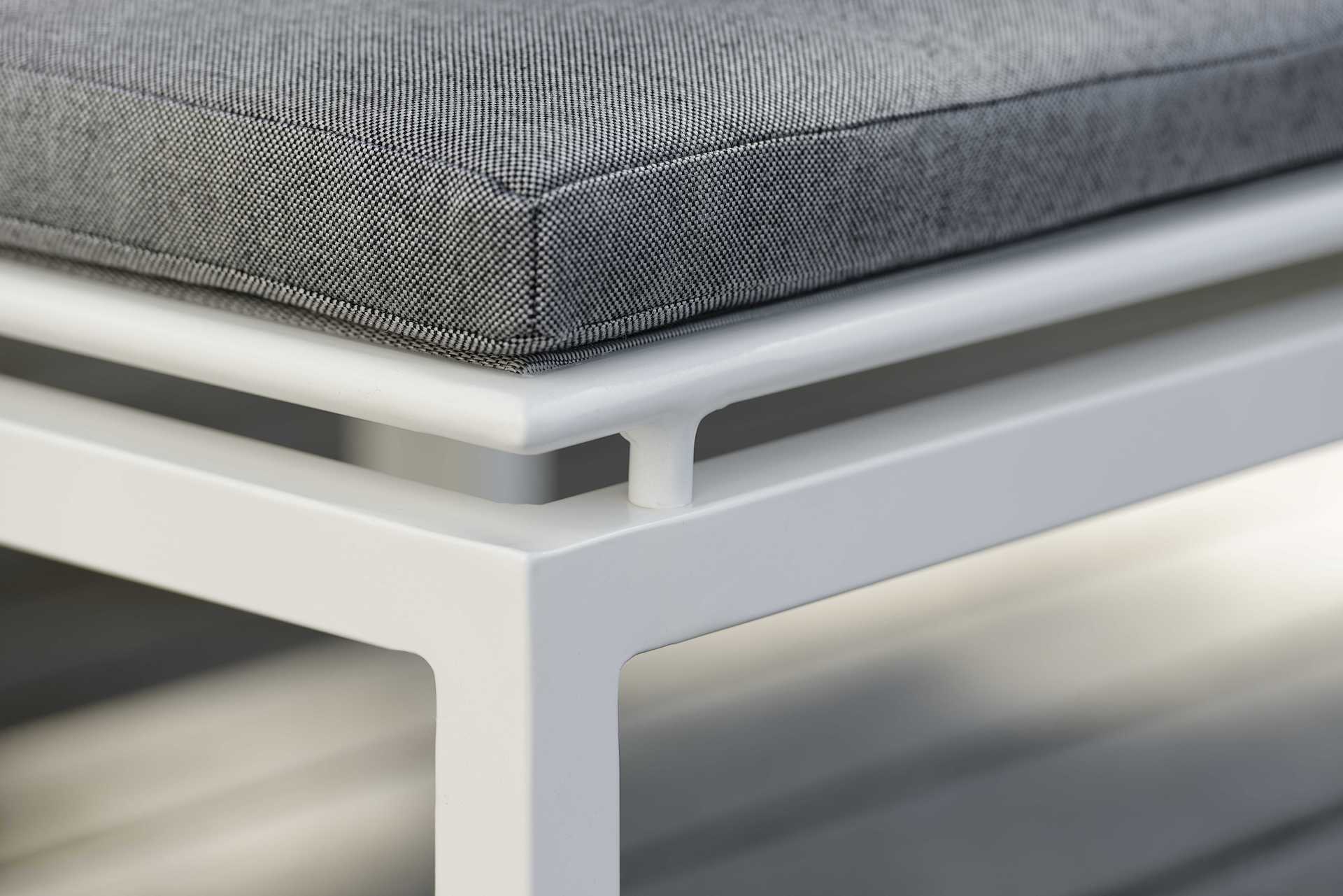 Dzięki niemu można zbudować zestaw narożny mebli ogrodowych, potraktować go jako odrębne, samodzielne siedzisko lub użyć jako wygodny podnózek w komplecie z fotelem wypoczynkowym.