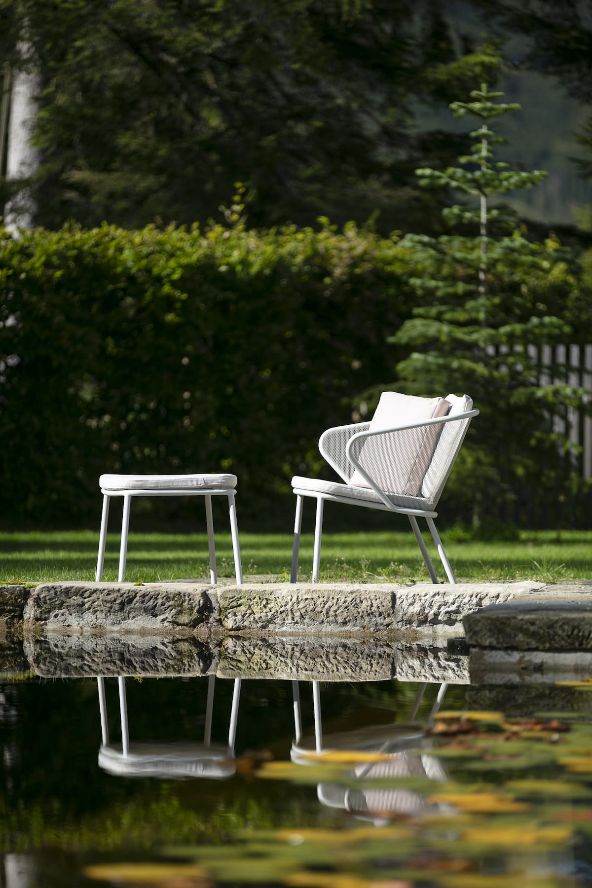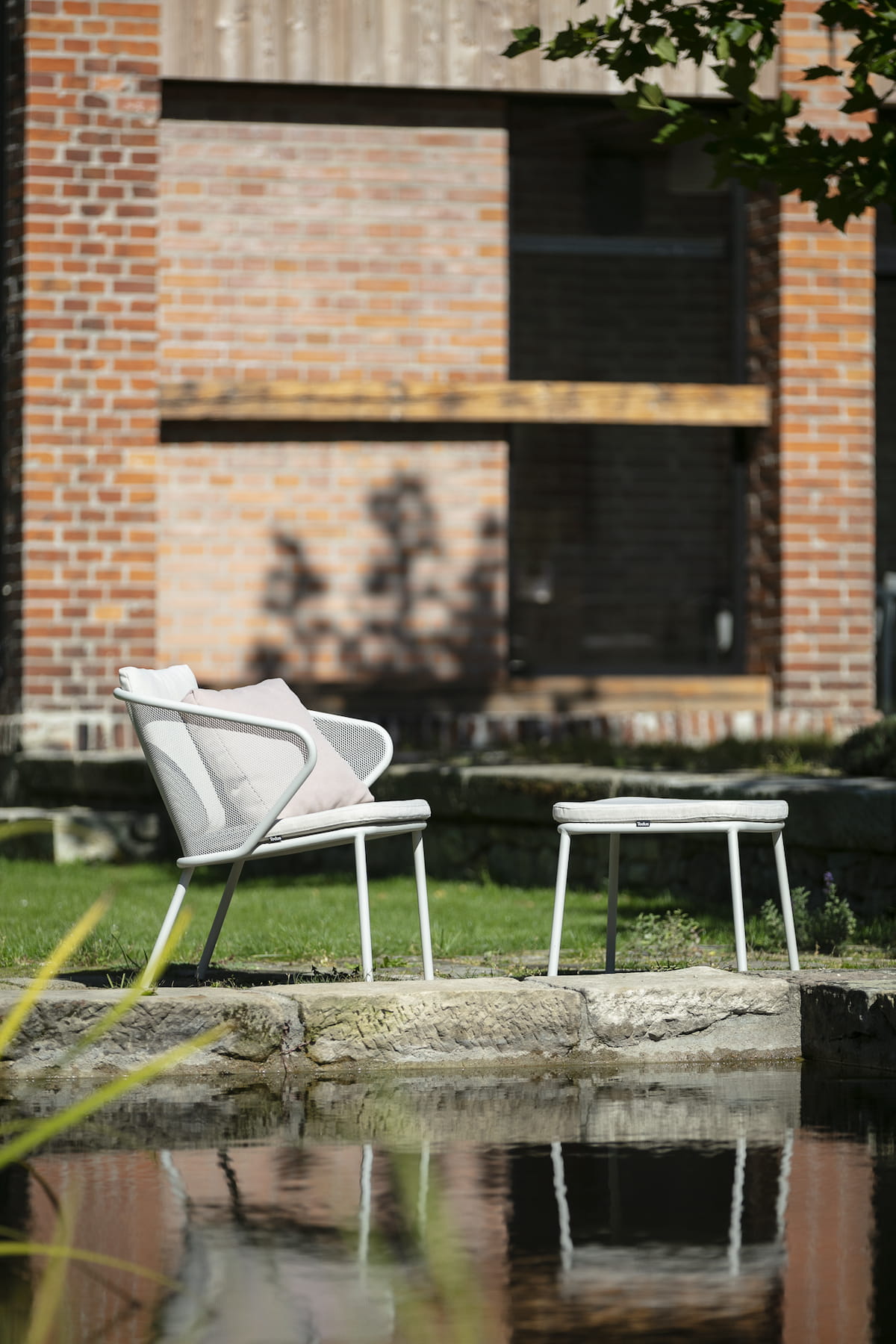 Podnóżek ogrodowy CONDOR stworzony ze stali nierdzewnej malowanej proszkowo z komfortową poduszką.