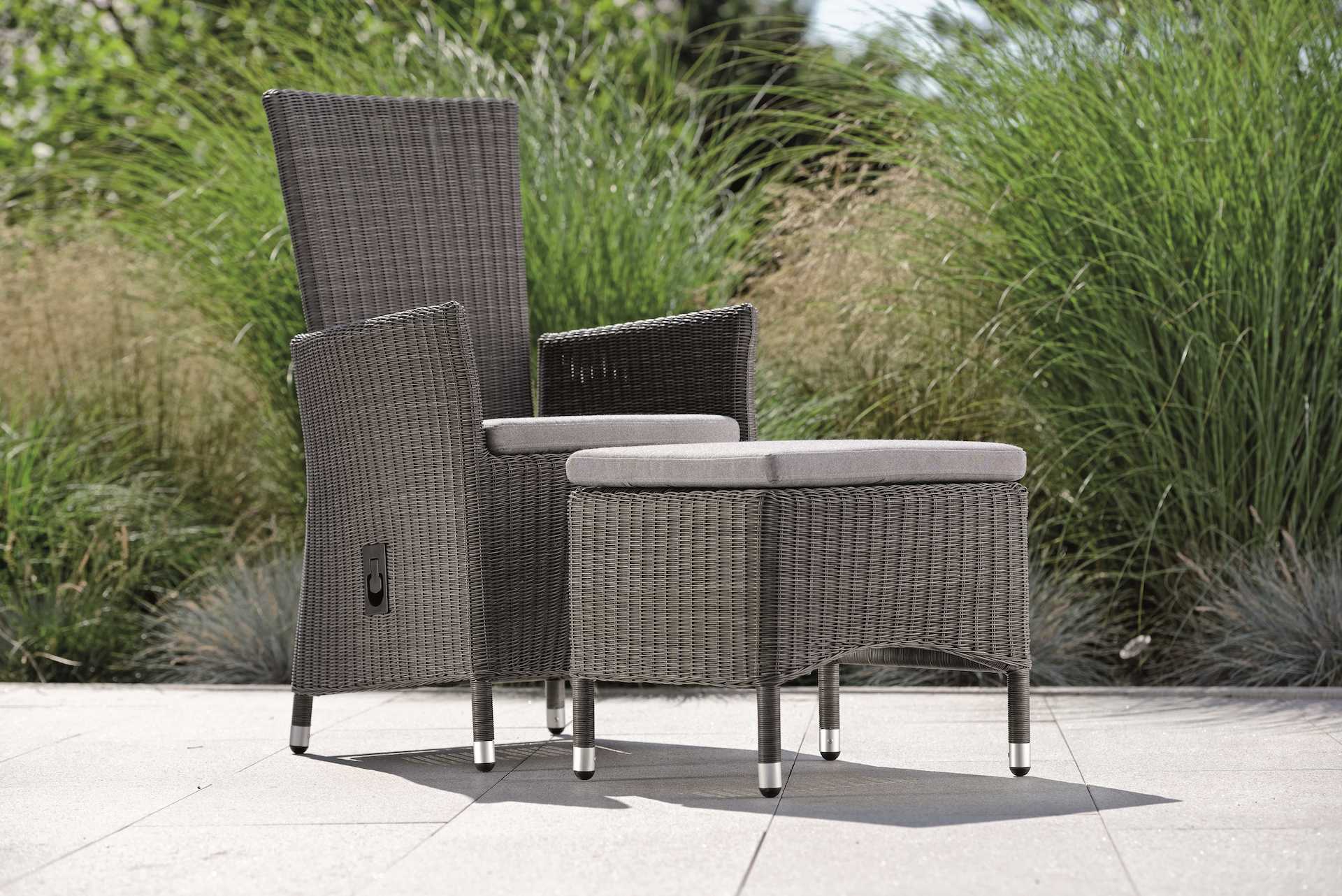 Ręczne oplatanie na solidnych, malowanych proszkowo aluminiowych ramach sprawia, że te meble ogrodowe są trwałe i unikalne.