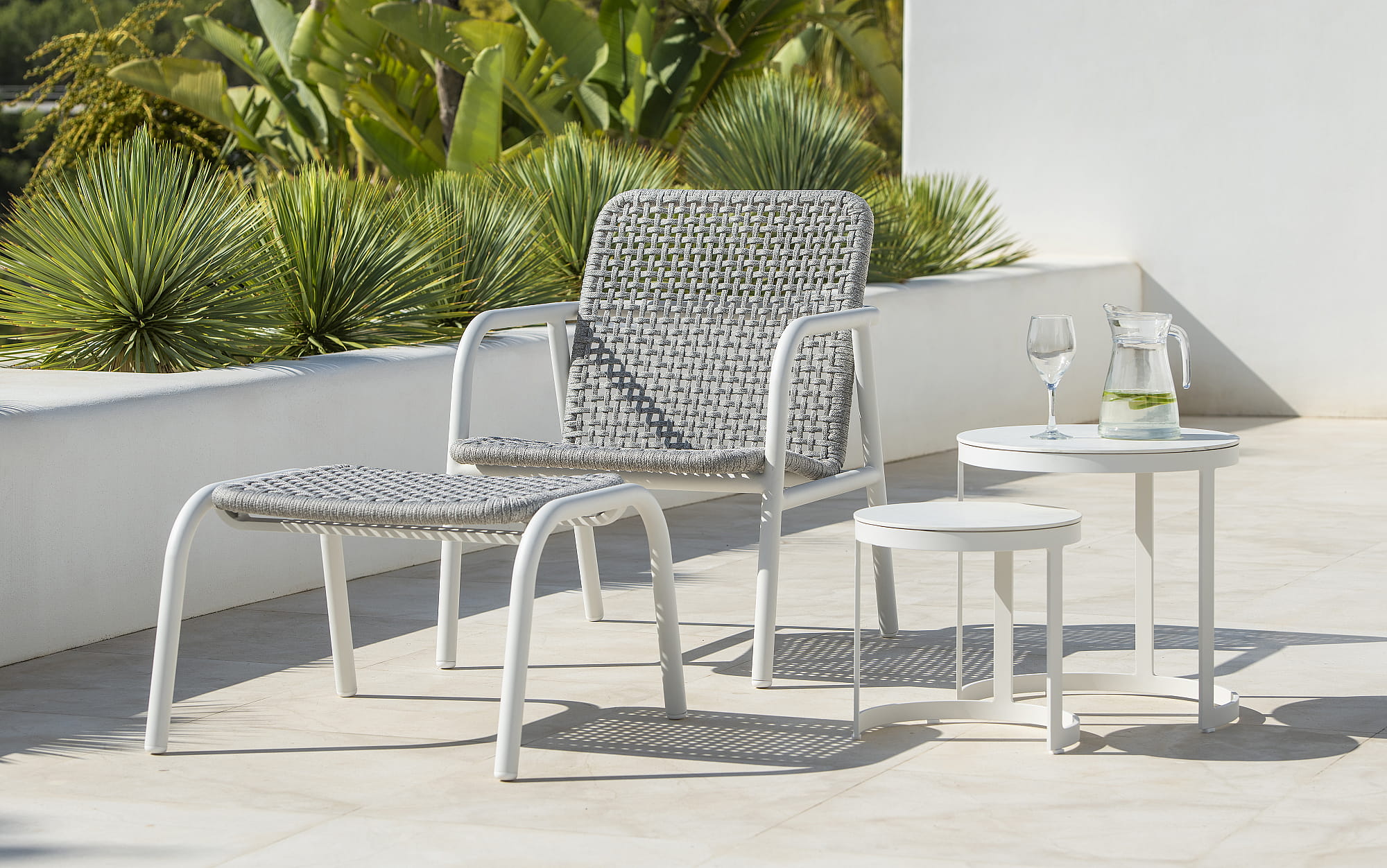 Jest to gama produktów outdoorowych wykonanych z lekkiego aluminium z wykończeniem z plecionej liny, która zapewnia piękną estetyczną grę formy i funkcji.