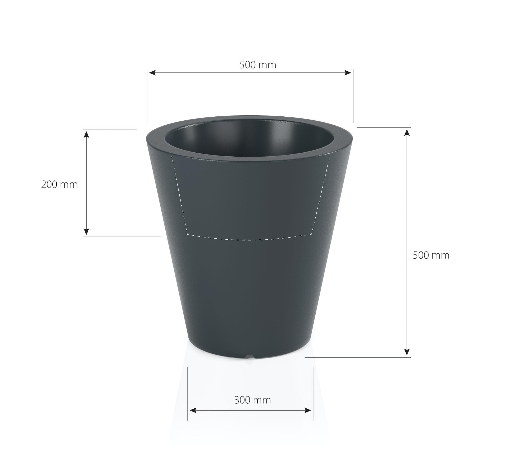 - Wymiary: Wysokość 50 cm, średnica 50 cm – idealna do roślin o średnich i dużych rozmiarach, doskonała na balkon i taras.