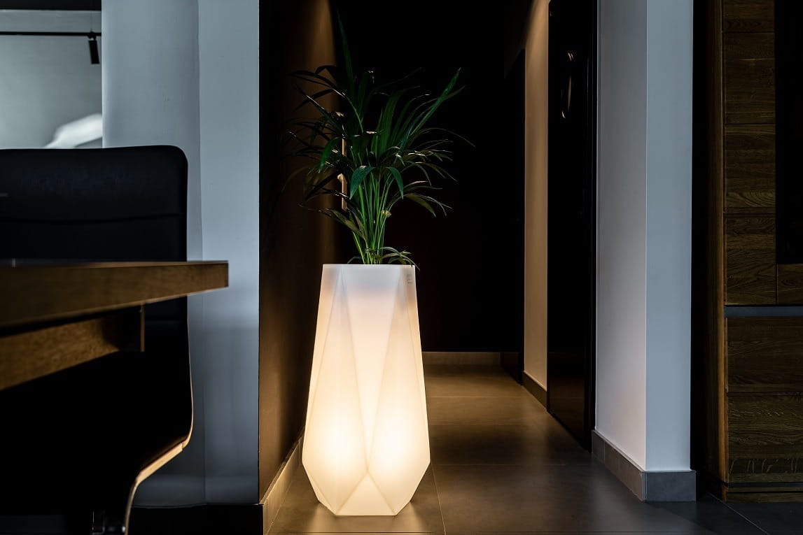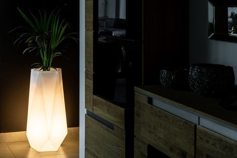 Wersja podświetlana donicy Siena rozświetli wnętrze domu lub umili wieczór na tarasie - dostępna w 2 wersjach: