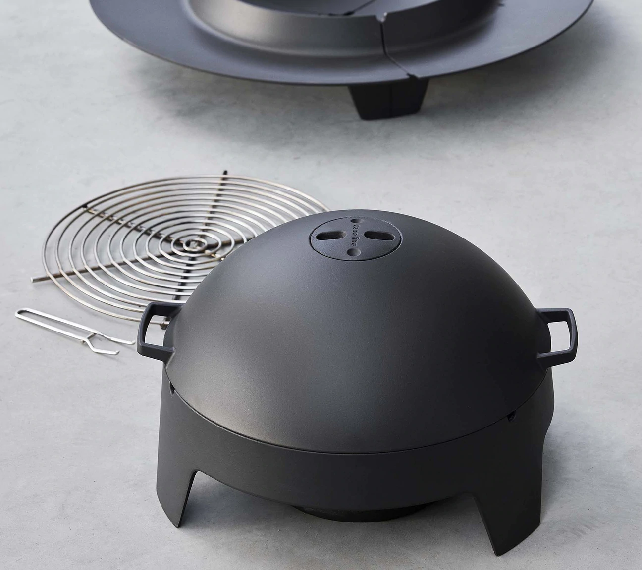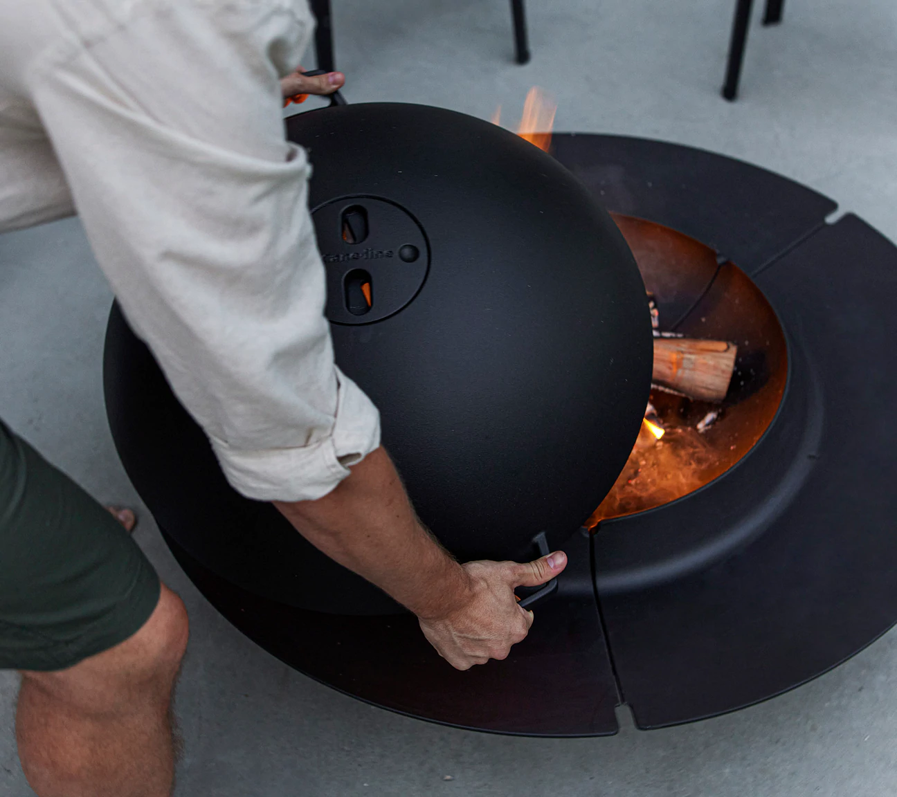 Pozwala bez obaw na iskry korzystać z paleniska, stworzone z odlewu stali, w tym samym czarnym kolorze co palenisko, stanowiąc integralną całość.