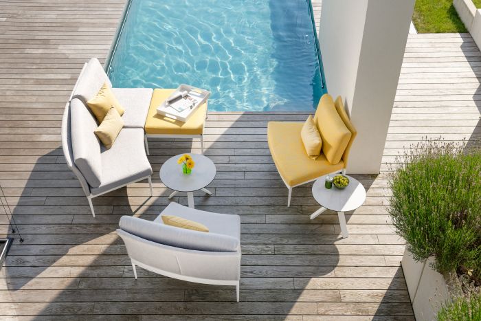 wypełnione są sprężystą, szybkoschnącą pianką i są w 100 % dedykowane do użytku na zewnątrz, choć stylistyką i jakoście wykonania przypominające meble domowe.