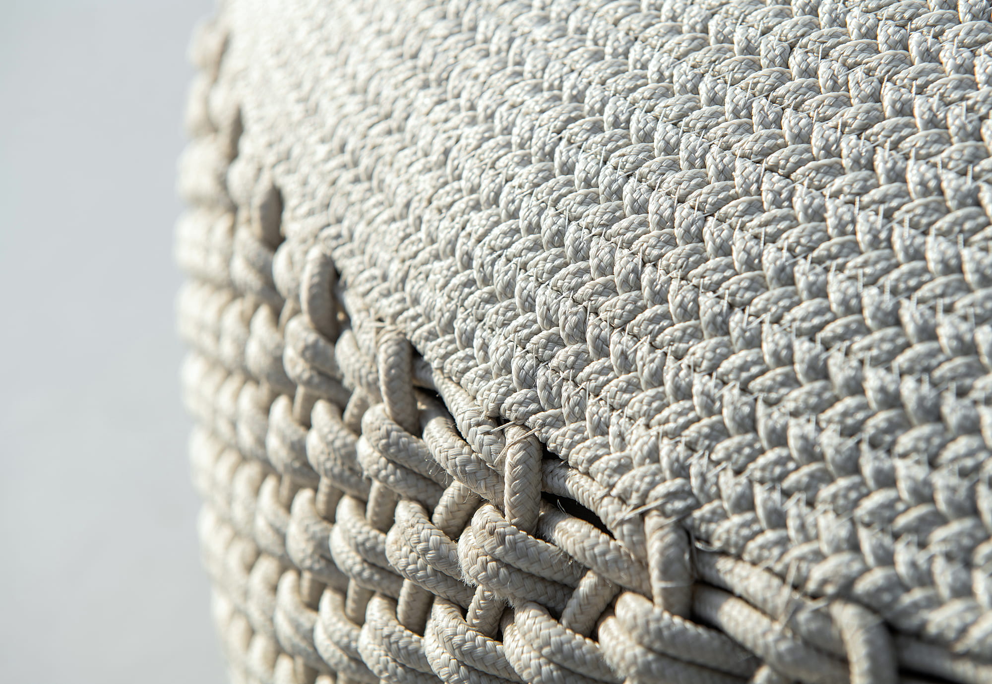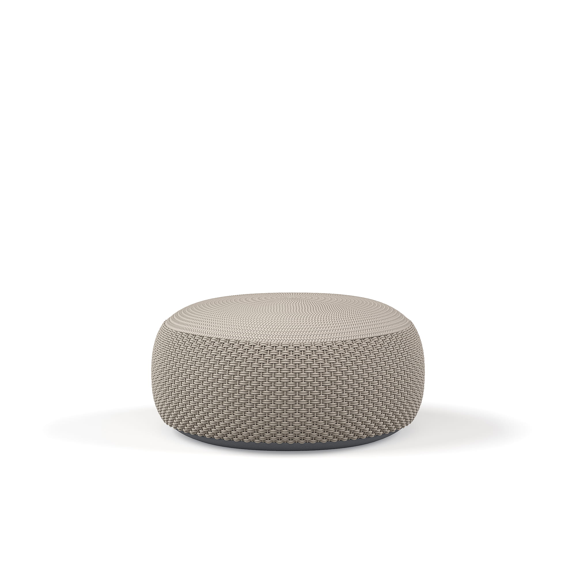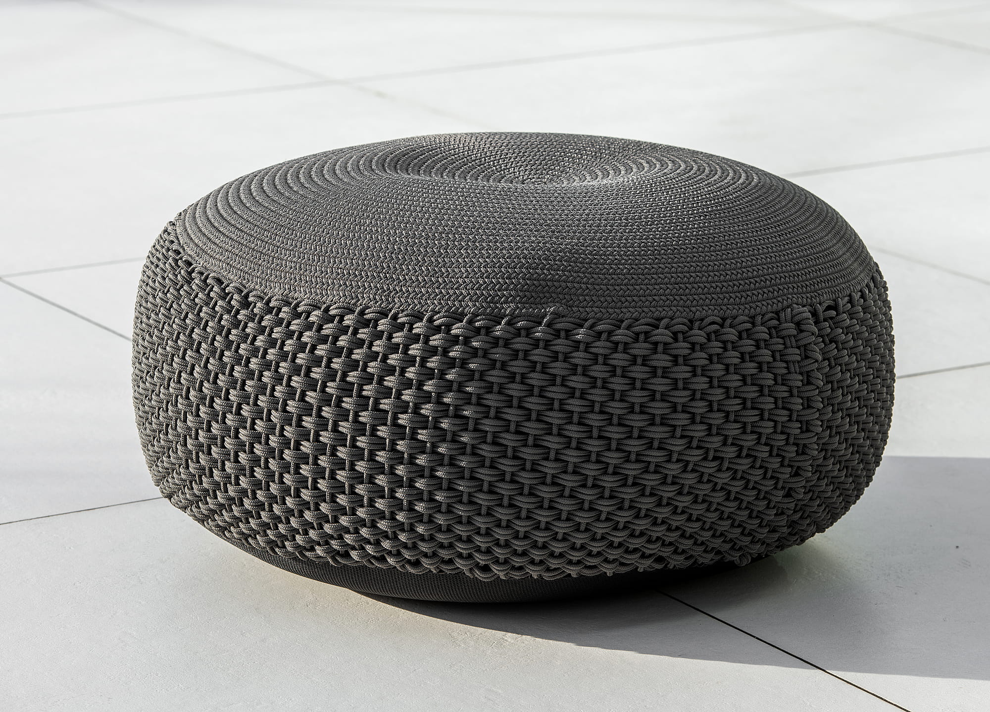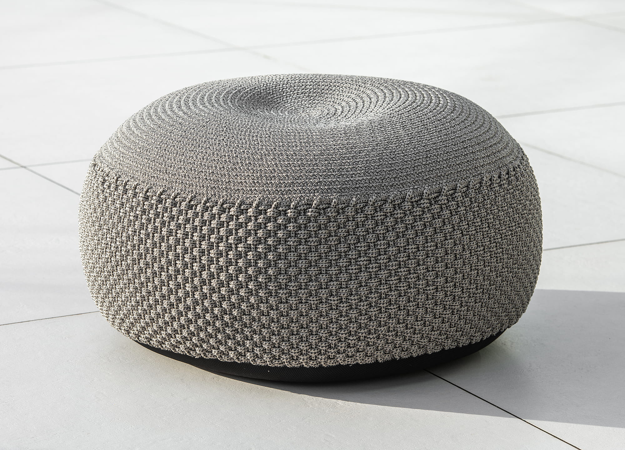 Dzięki odpornemu na warunki atmosferyczne poliolefinowemu splotowi i twardemu wypełnieniu można umieścić pufę w dowolnym miejscu i stworzyć kolorową przestrzeń na zewnątrz.