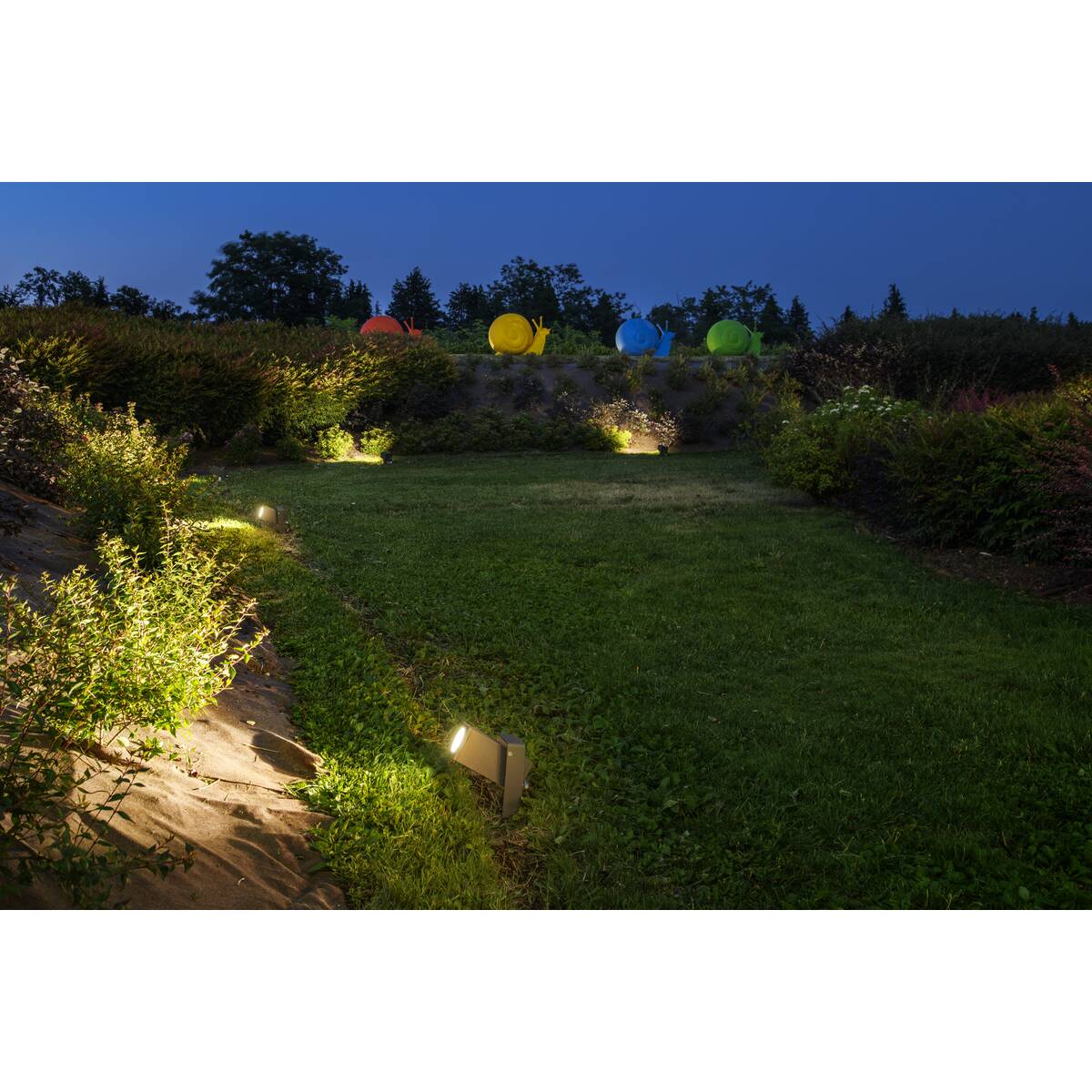 Będzie idealnym dodatkiem do każdego ogrodu czy rabaty. Wyposażony w stabilny klin ziemny.