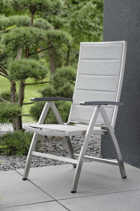 To krzesło ogrodowe z oparciem regulowanym, tak by komfortowo dopasować się do Twoich potrzeb.