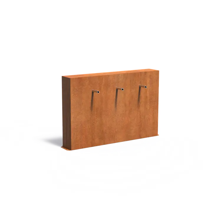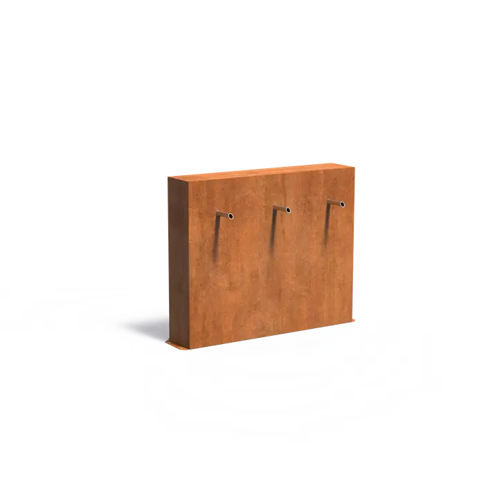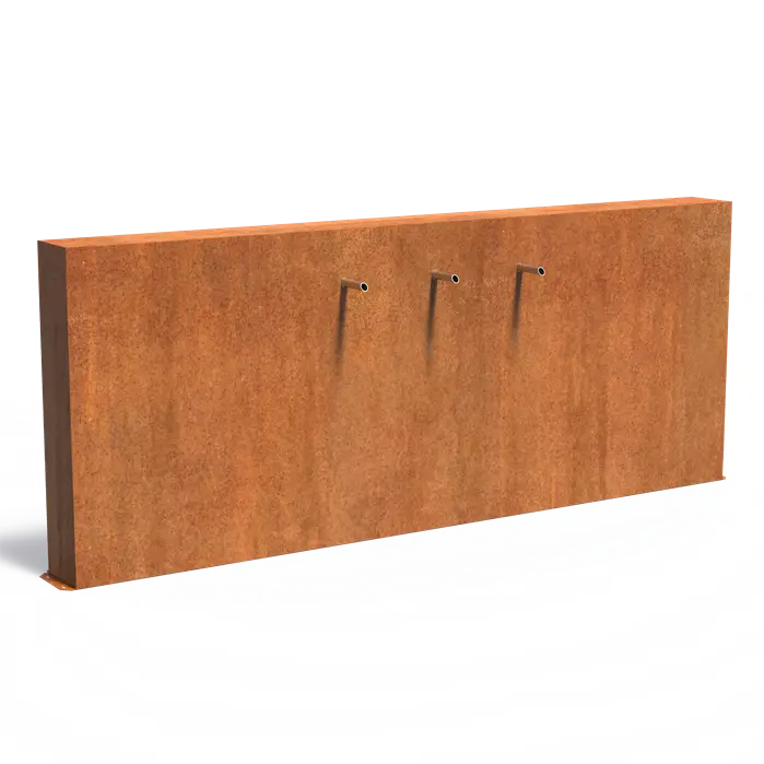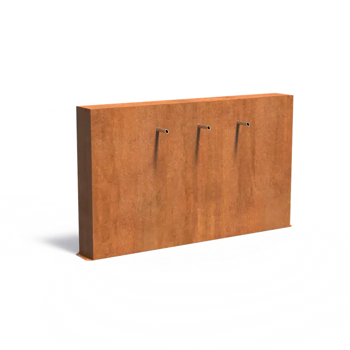 Ściana stawowa wolnostojąca z wodospadem z fontanną z trzema wylewkami :: stal corten