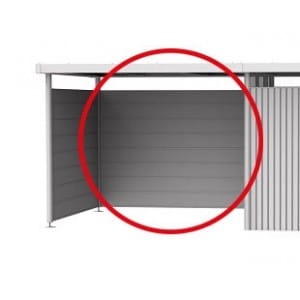 Do wyboru można przymocować ścianę tylną i / lub element ściany bocznej do wiaty domku ogrodowego HighLine.