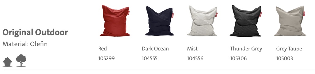 Siedzisko Original Outdoor jest wykonane z wysokiej jakości, wodoodpornej tkaniny Sunbrella lub Olefin (w zależności od koloru) o doskonałej trwałości kolorów.