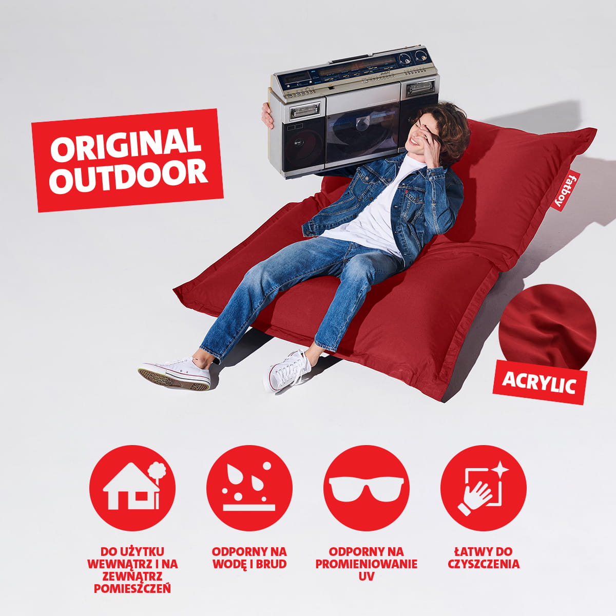 Ta wersja kultowego produktu marki Fatboy jest wystarczająco odporna na promieniowanie UV, brud i wodę, a jednocześnie wystarczająco miękka, by wygodnie spędzać czas na świeżym powietrzu.