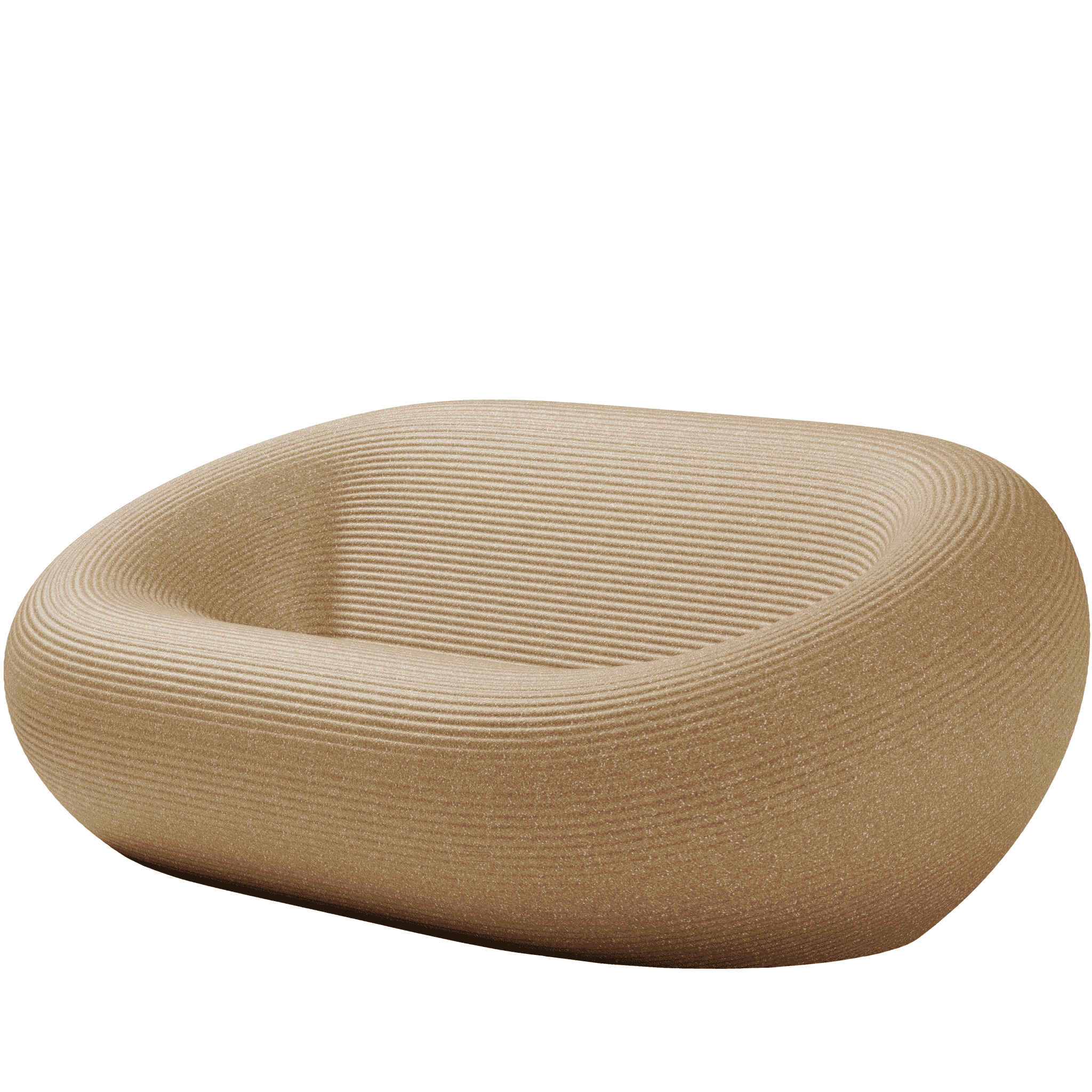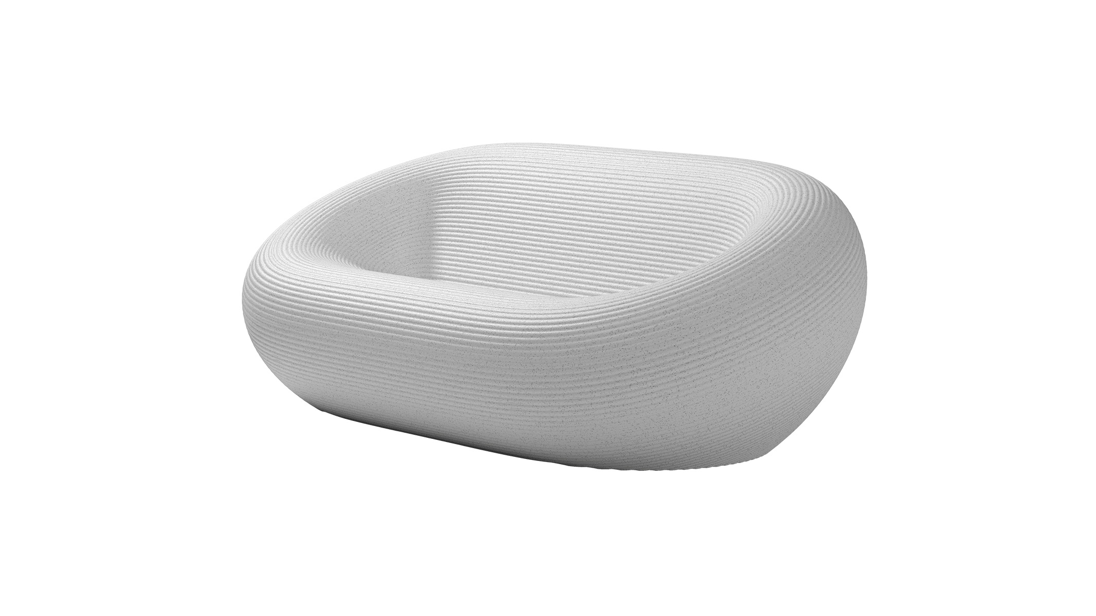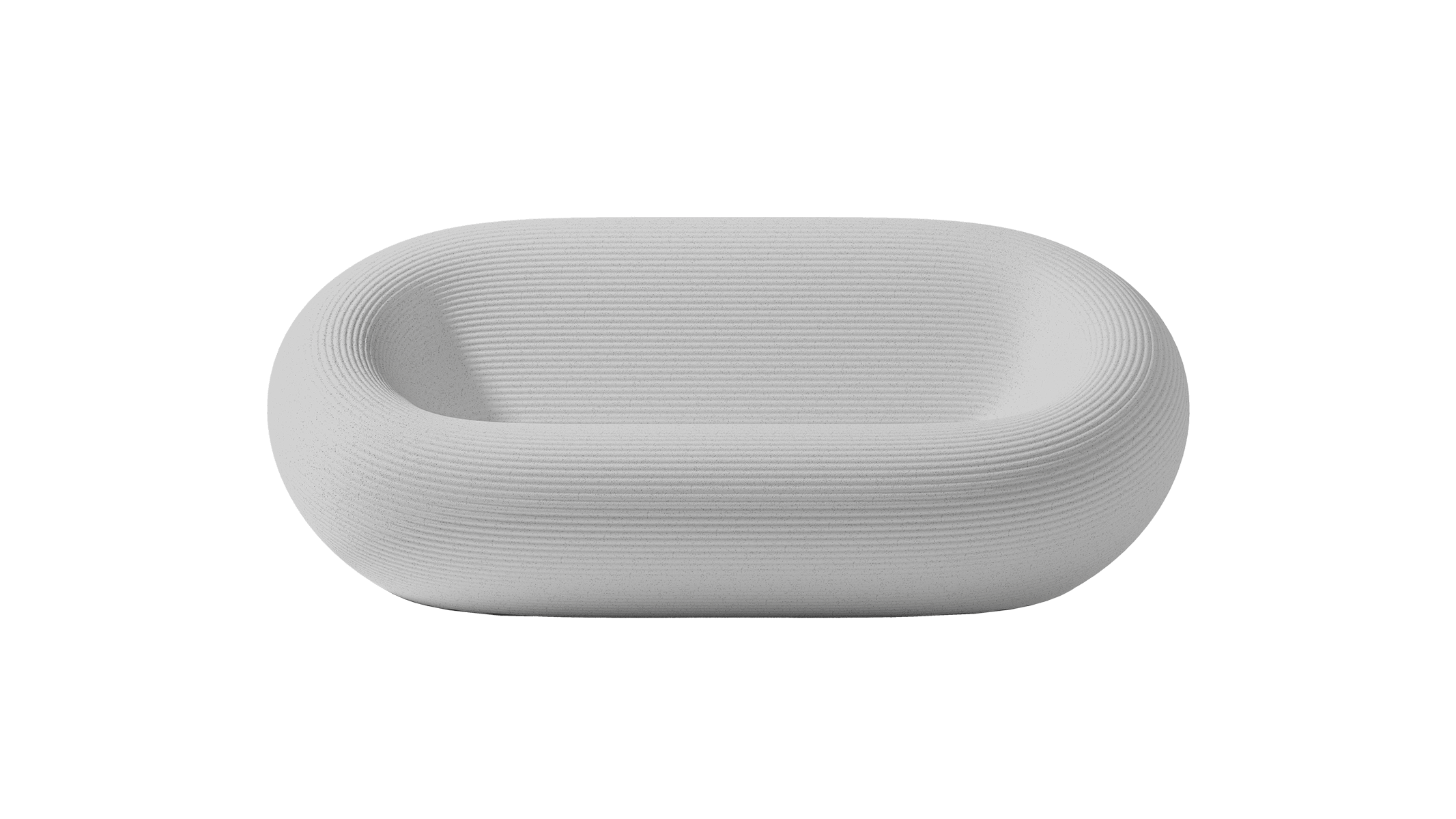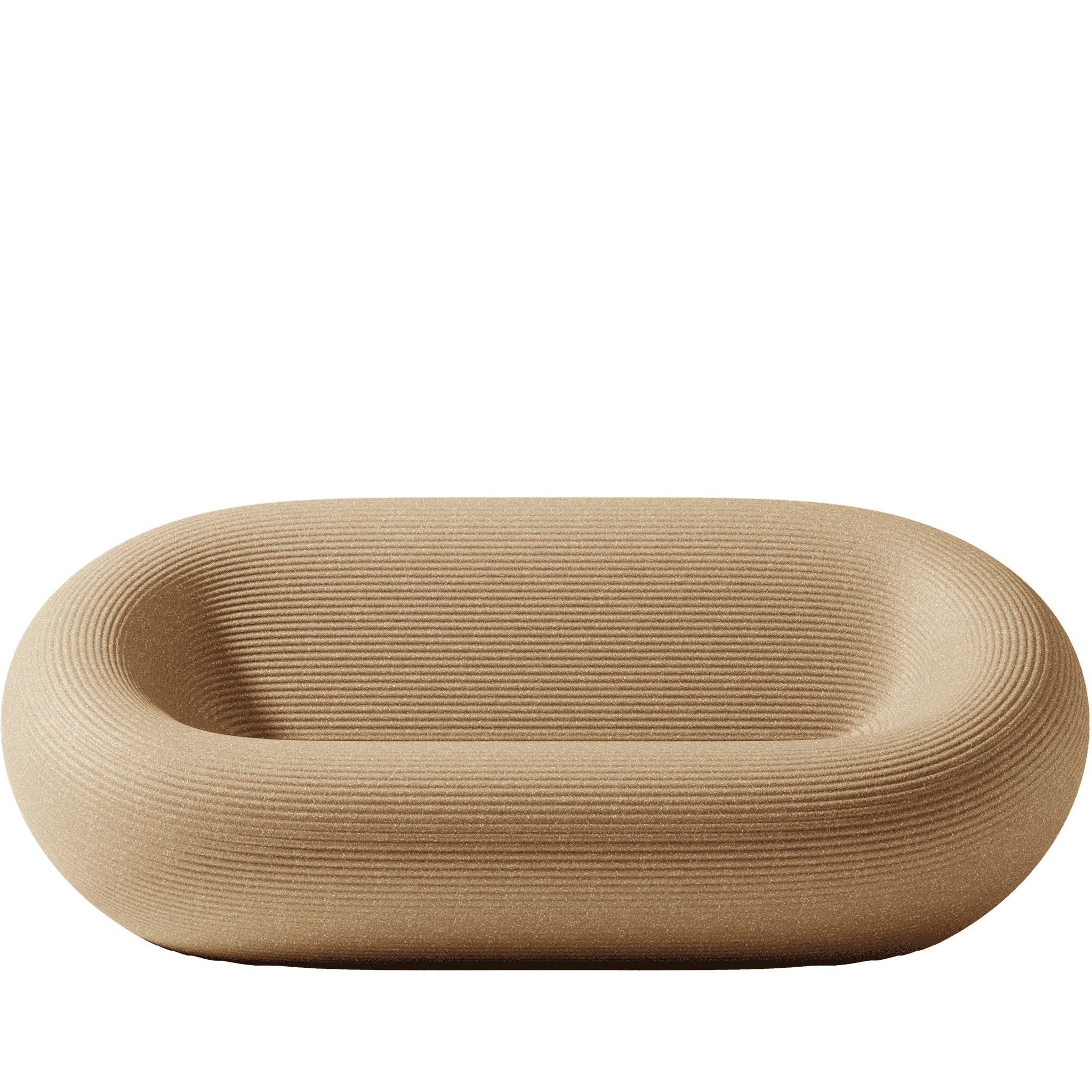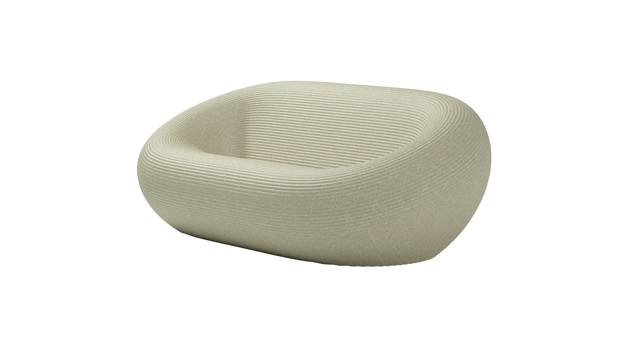 Sofa NAMI mix powstaje w wyniku rotacyjnego obrotu sekcji wokół przekątnej. Dzięki temu ma idealnie okrągły kształt, a żłobienia charakteryzujące jej powierzchnię rozchodzą się od środka do krawędzi tworząc sekwencję koncentrycznych pierścieni.