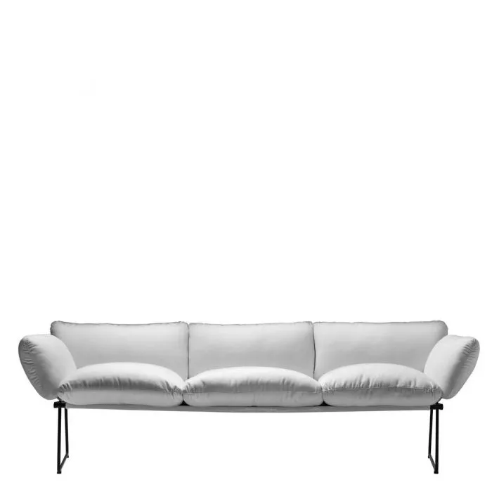 Z projektu zaprojektowanego przez Enzo Mari dla Driade, Elisa to kolekcja sof i foteli o cienkiej strukturze kontrastującej z miękką objętością poduszek.