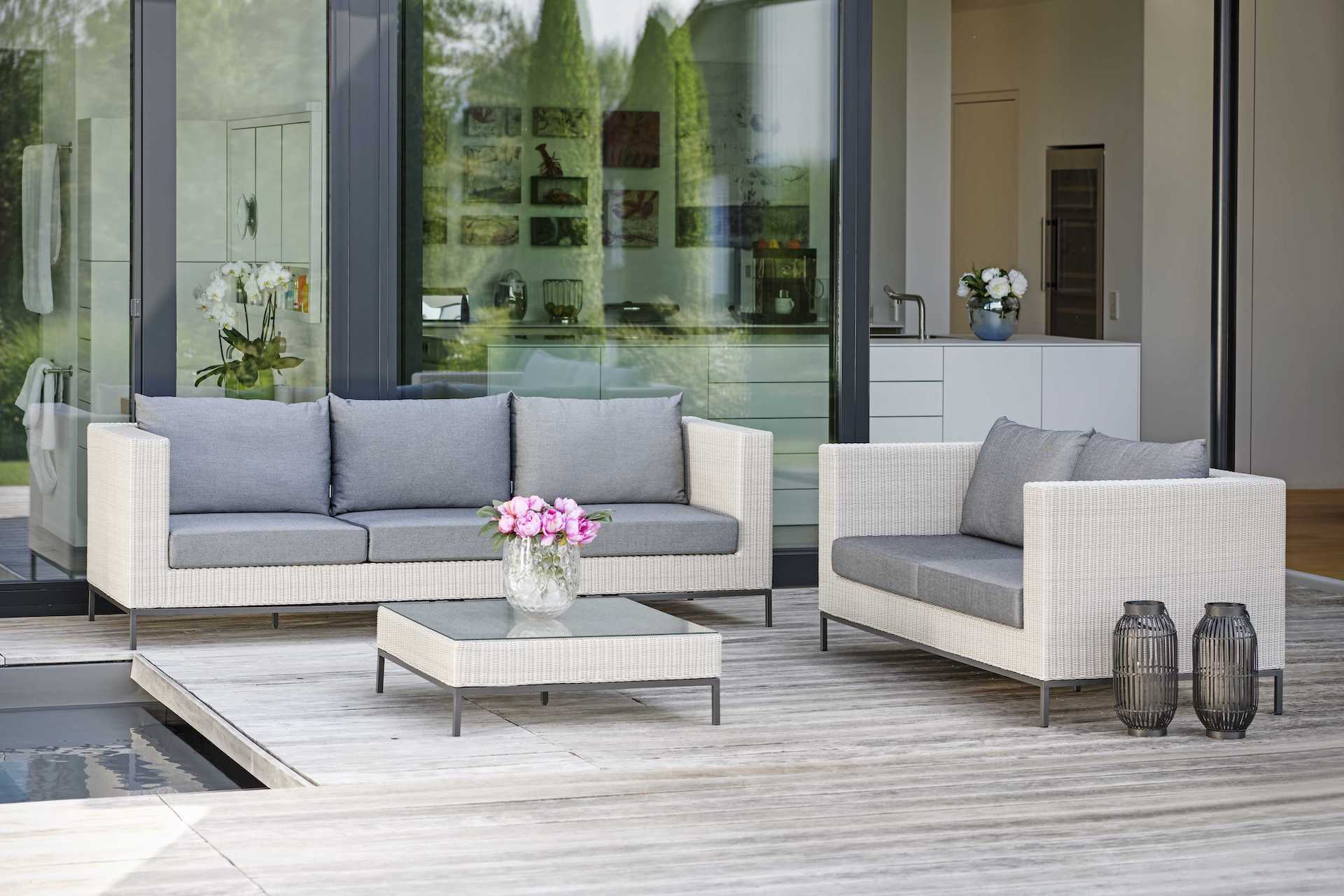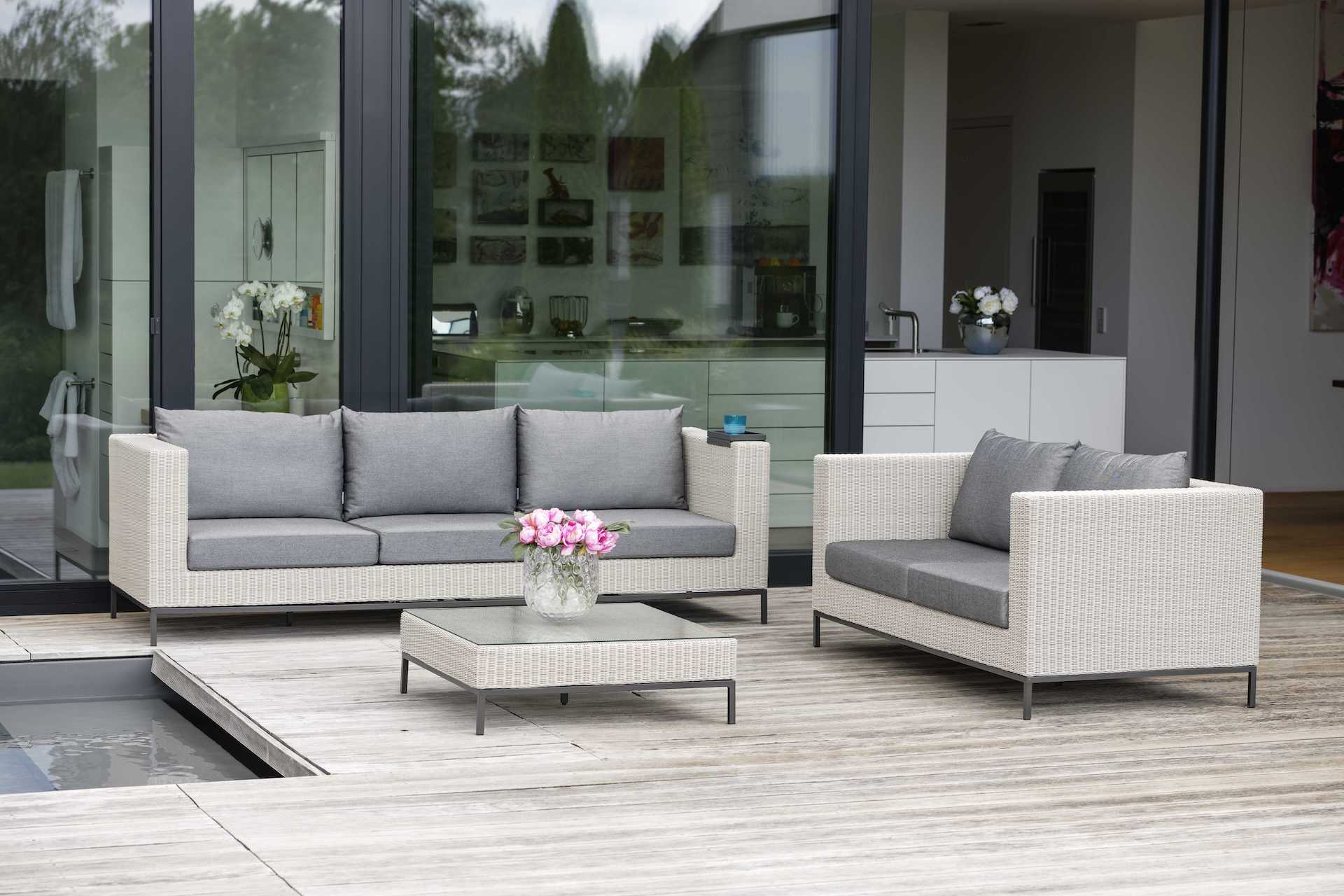 Połączenie minimalistycznego designu z tradycyjnym materiałem w nowoczesnym wydaniu jakim jest eko-wiklina sprawia, że zestaw mebli ogrodowych FONTANA to idealna propozycja na niejeden taras czy ogród.