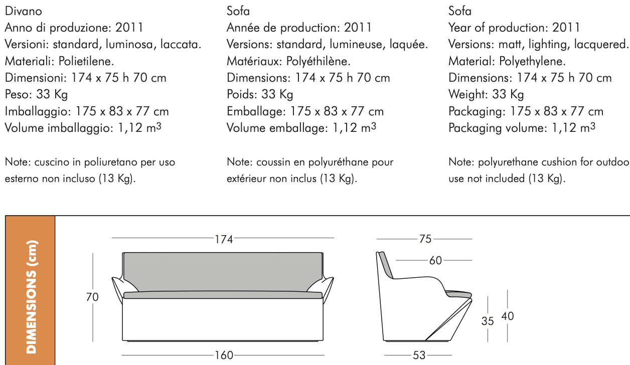 Sofa ogrodowa Kami Yon jest wykonana z polietylenu w technologii formowania rotacyjnego.