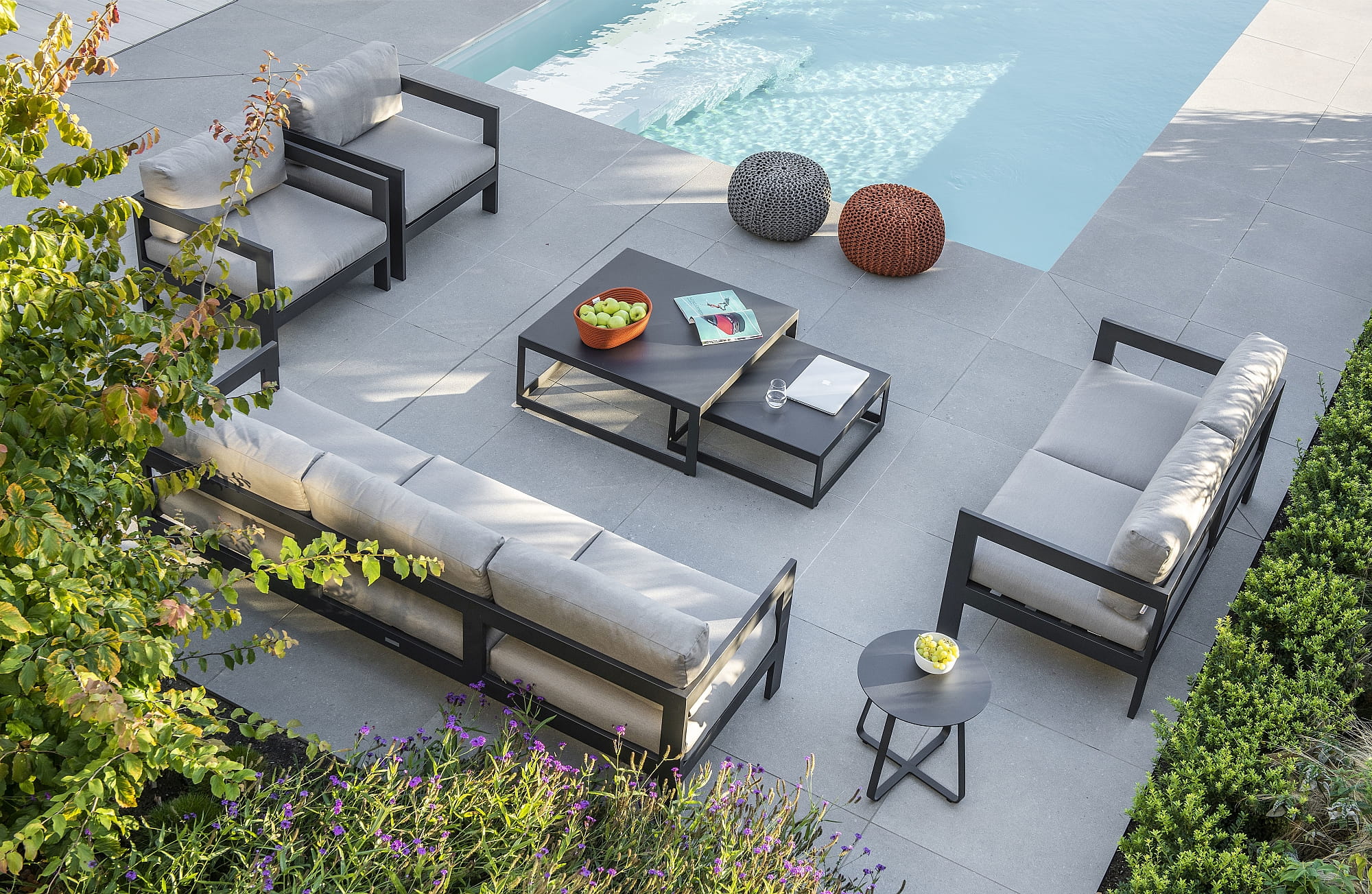 Kolekcja balansuje na granicy klasyki i nowoczesności. Poduszki wykonane z wysokiej jakości tkaniny Sunbrella lub Exteria i wypełnione pianką na każdą pogodę, ani słońce, ani deszcz nie będą miały wpływu na komfort użytkowania.