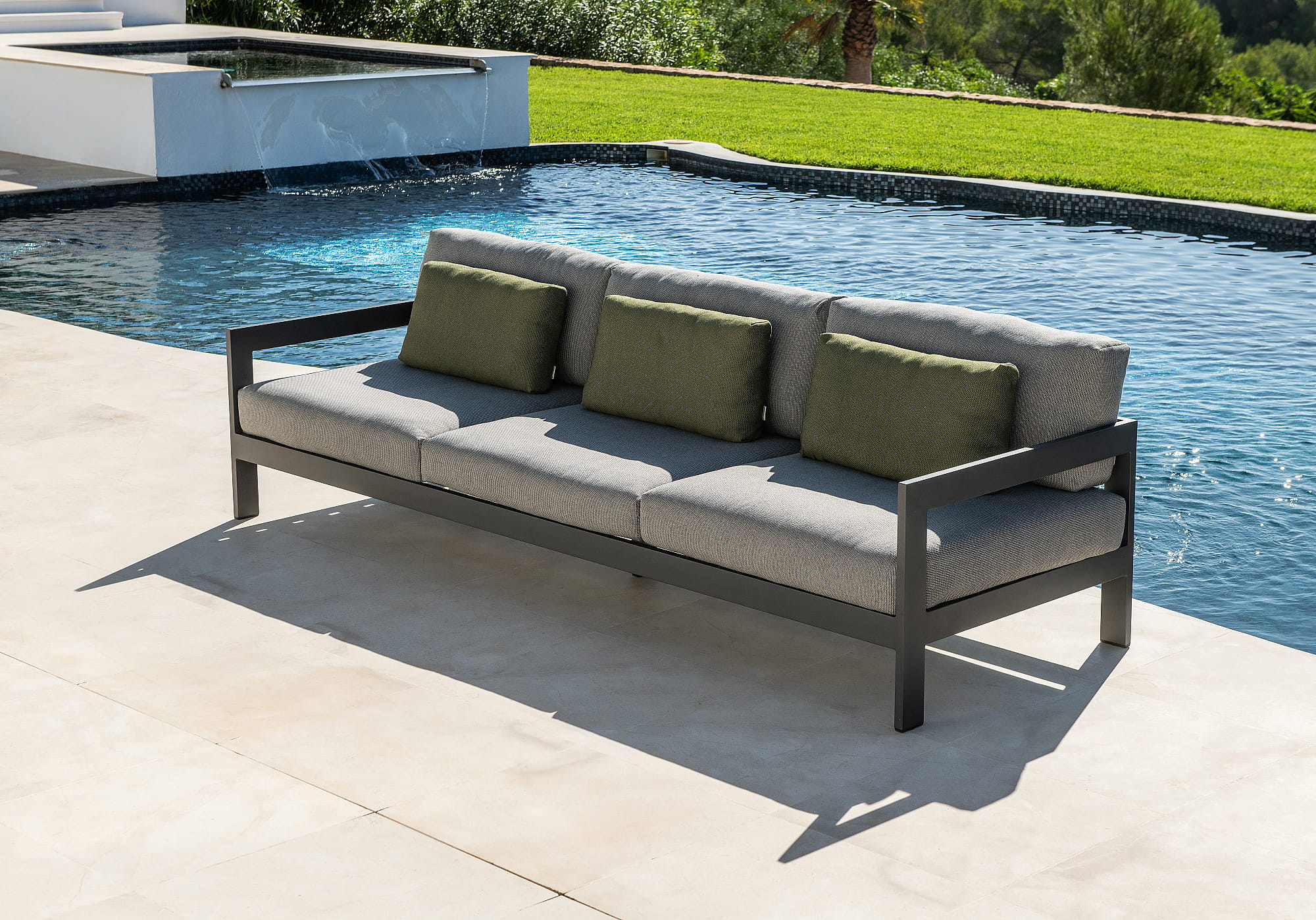 Kolekcja balansuje na granicy klasyki i nowoczesności. Poduszki wykonane z wysokiej jakości tkaniny Sunbrella lub Exteria i wypełnione pianką na każdą pogodę, ani słońce, ani deszcz nie będą miały wpływu na komfort użytkowania.