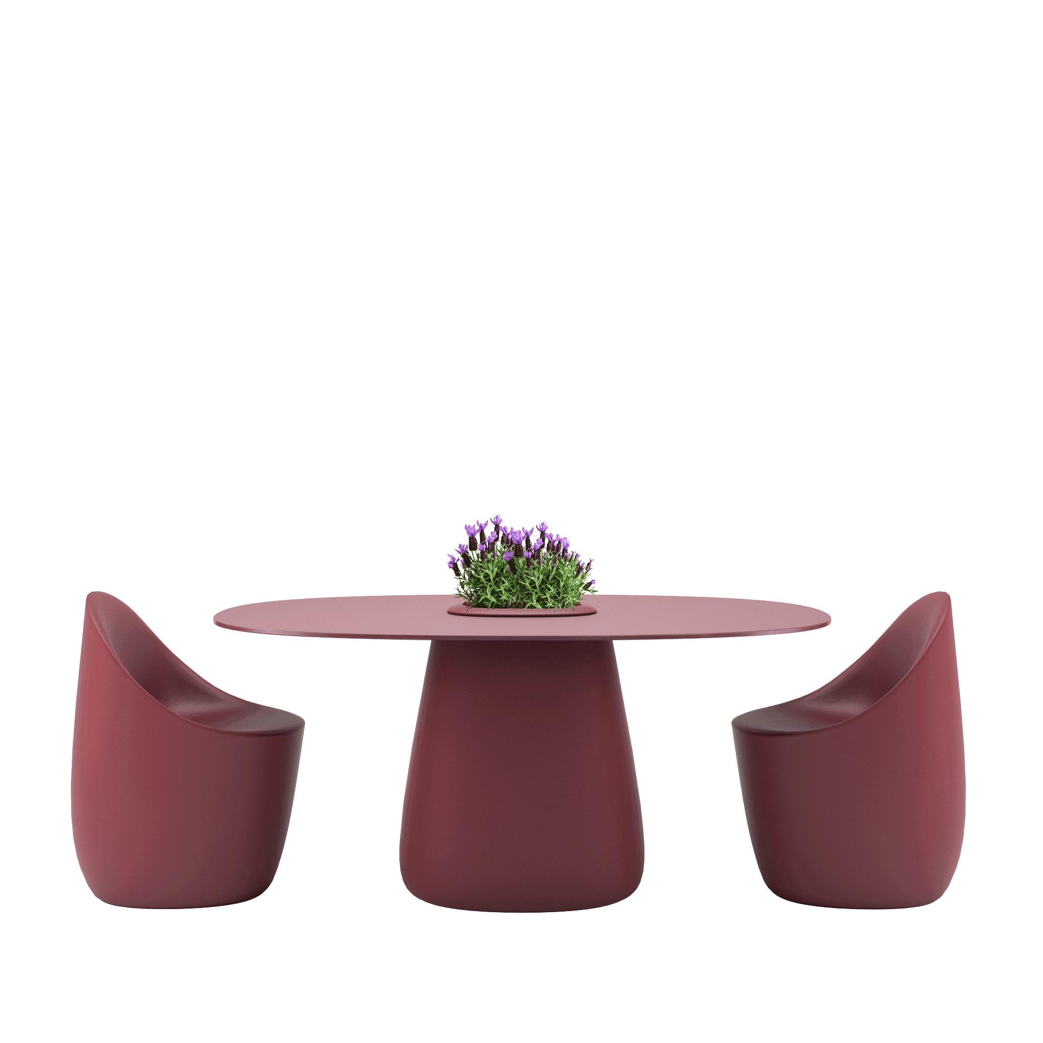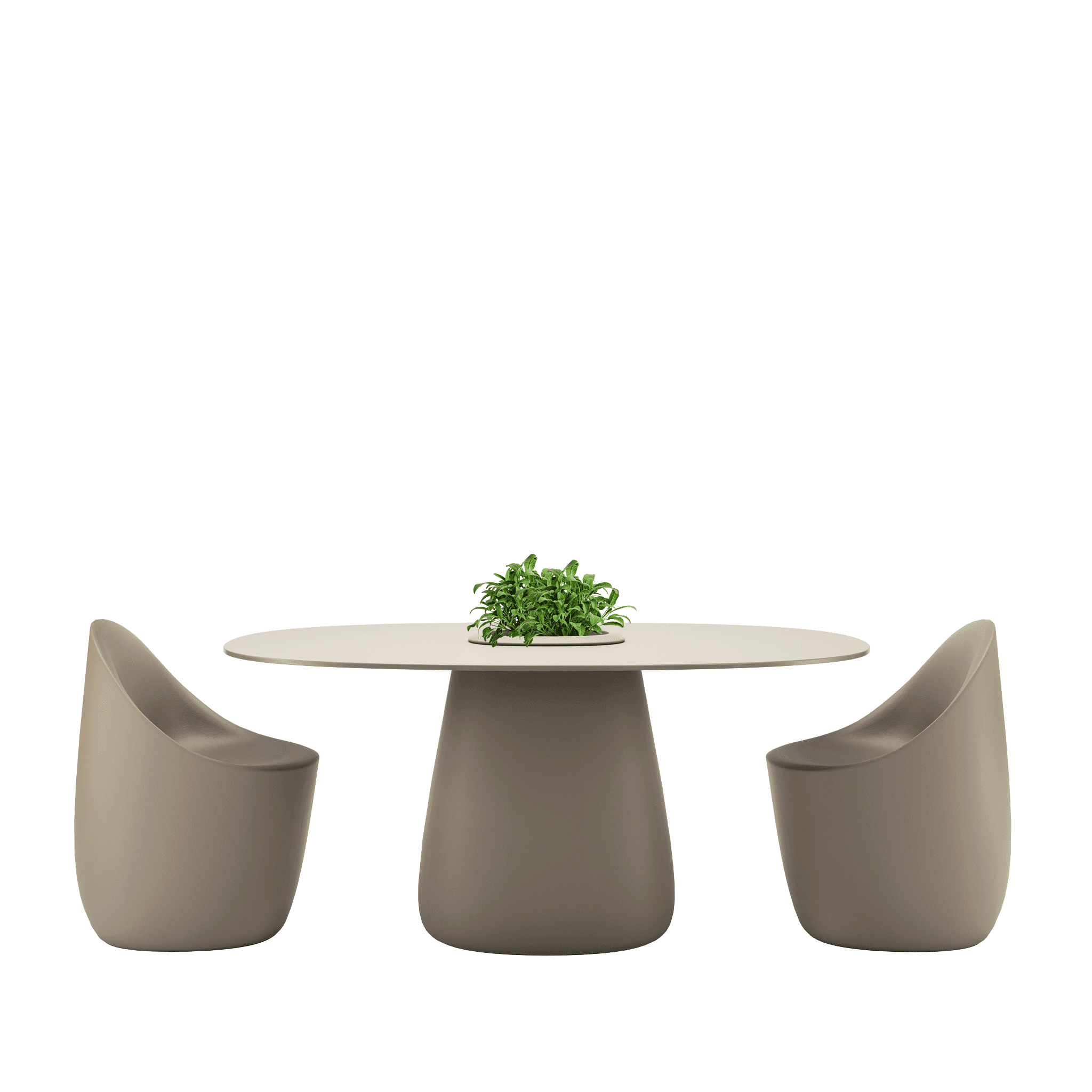 Stół ogrodowy COBBLE zaprojektowany przez Elisę Giovannoni charakteryzuje się centralną podstawą oraz solidnym, owalnym blatem wykonanym z trwałego HPL.