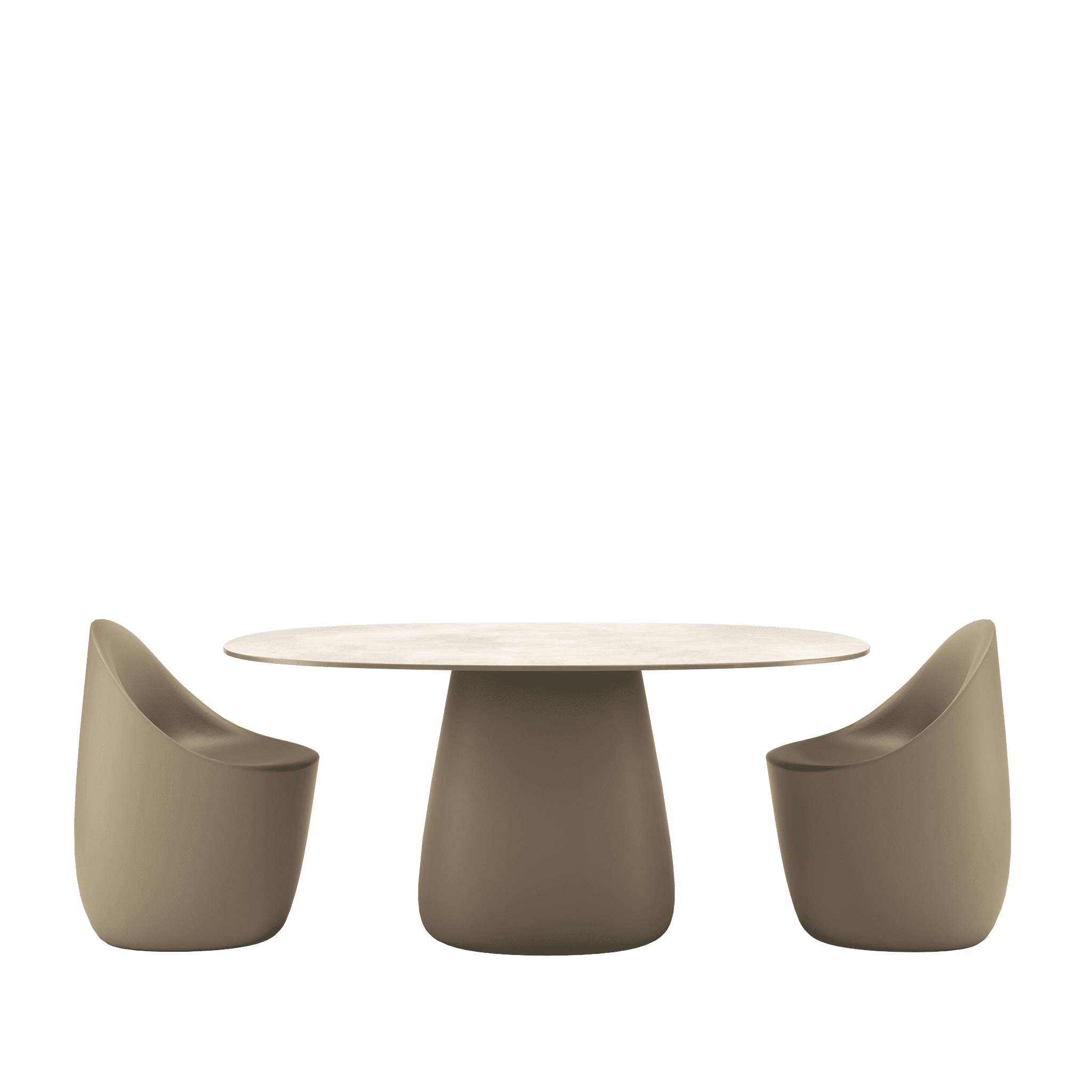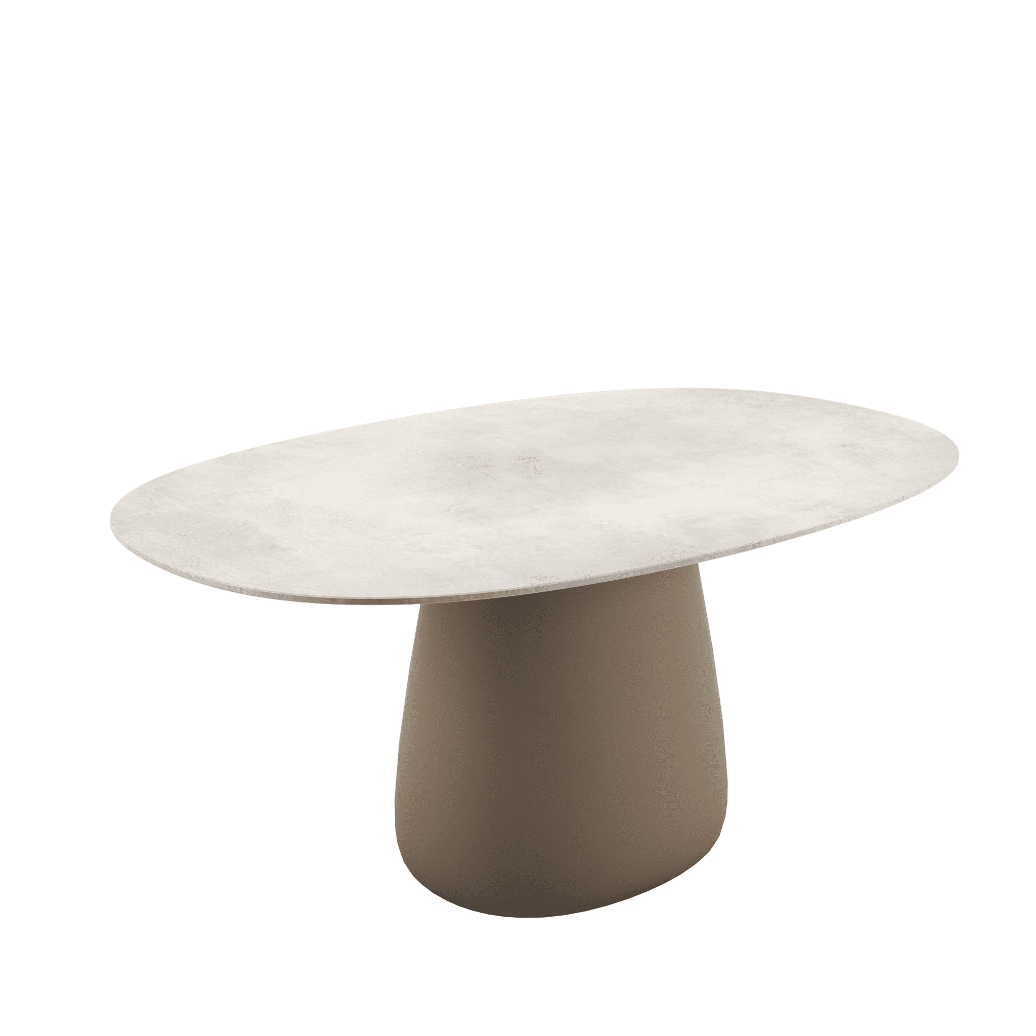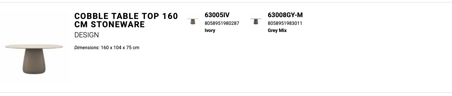 Stół ogrodowy COBBLE zaprojektowany przez Elisę Giovannoni charakteryzuje się centralną podstawą oraz solidnym, owalnym blatem ceramicznym o gr. 12 mm wykonanym z materiały laminam.