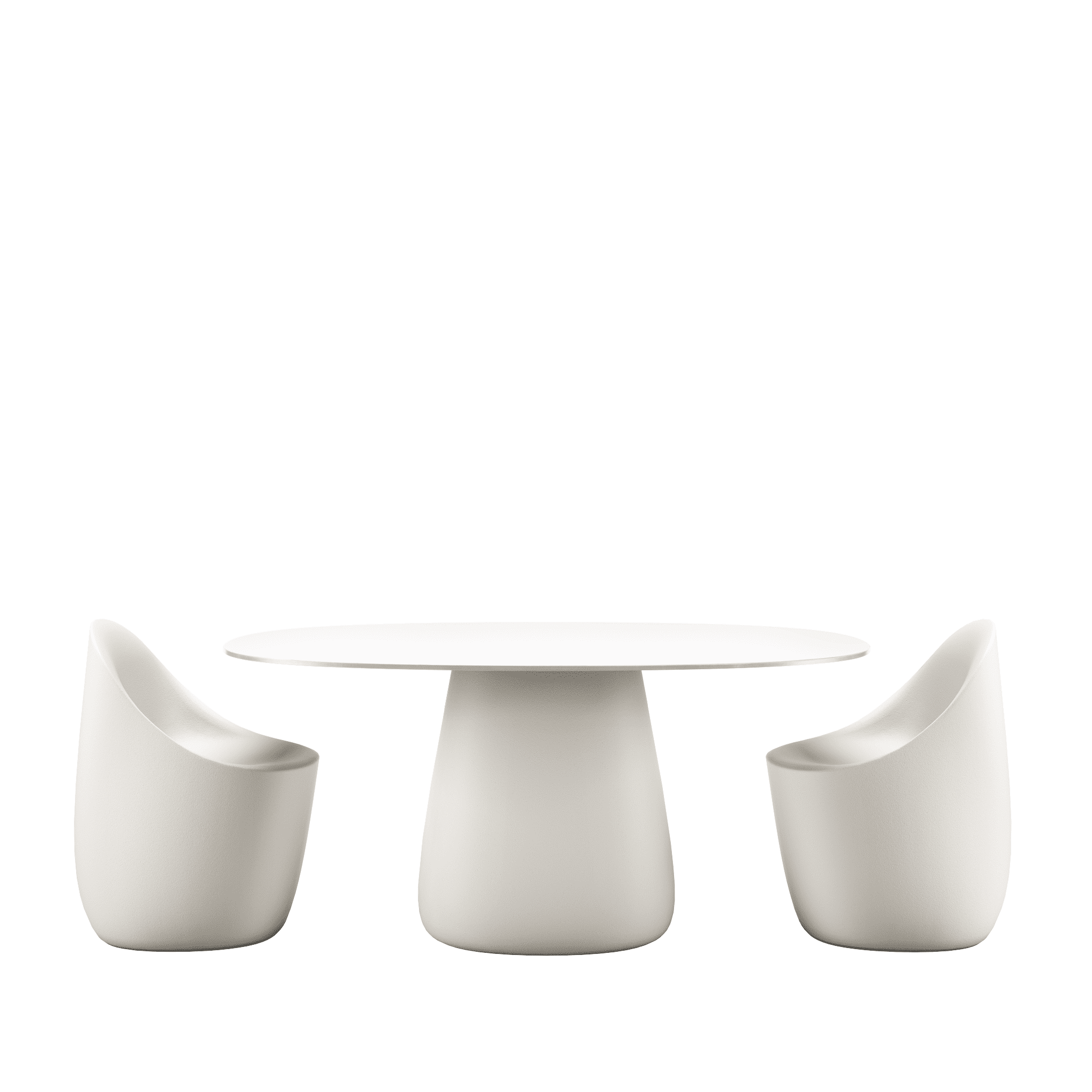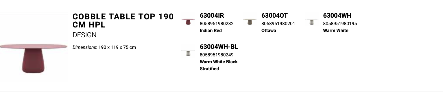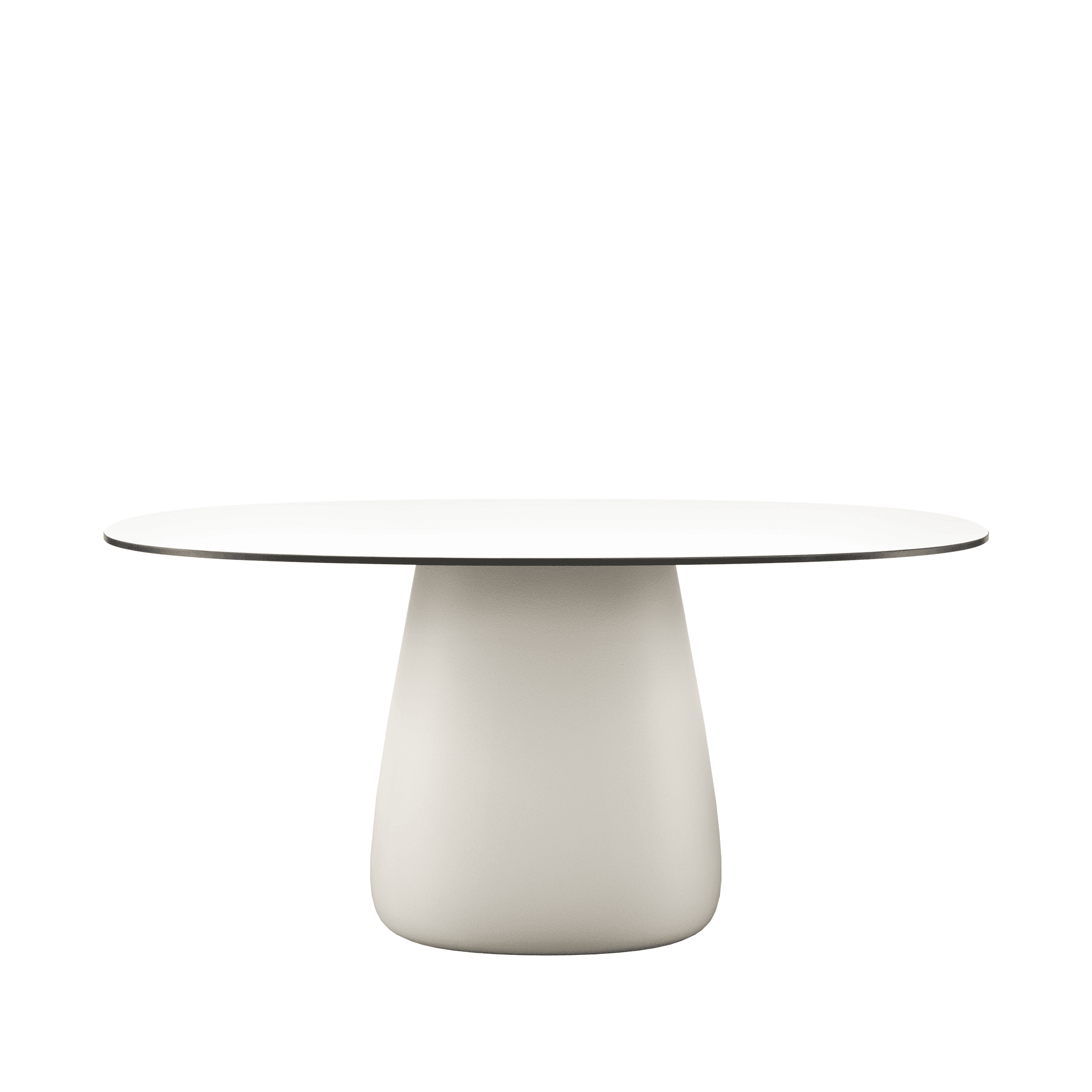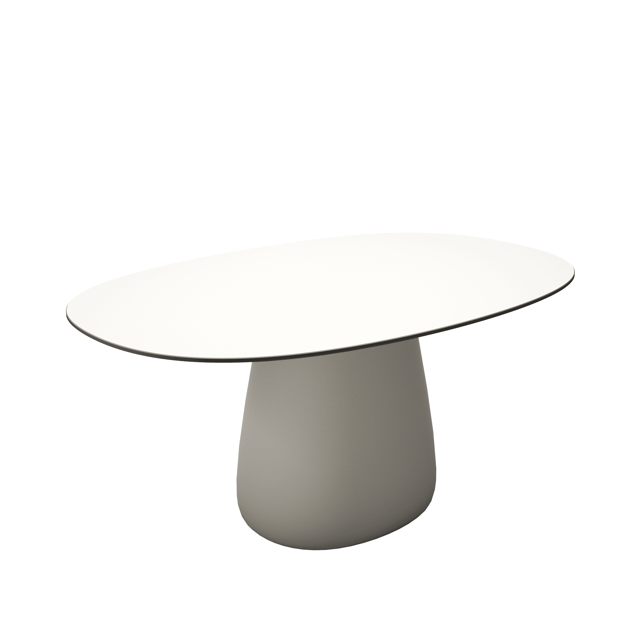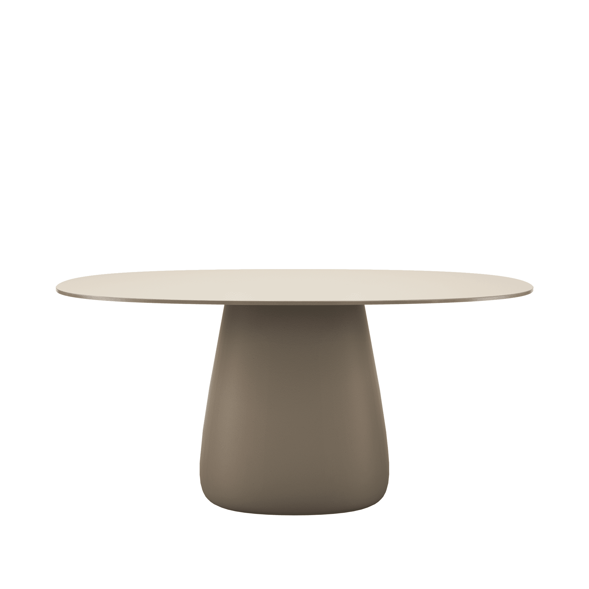 Stół ogrodowy COBBLE zaprojektowany przez Elisę Giovannoni charakteryzuje się centralną podstawą oraz solidnym, owalnym blatem wykonanym z trwałego HPL.