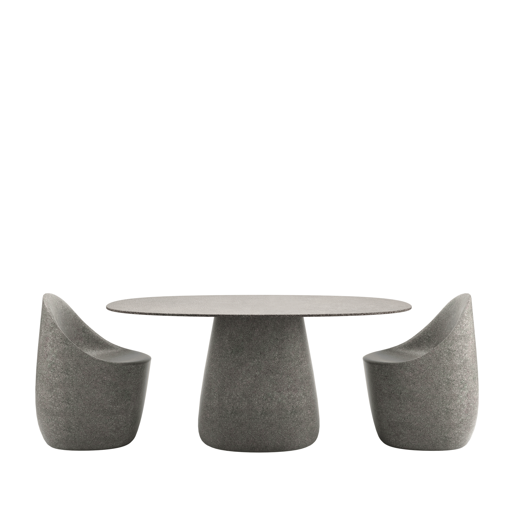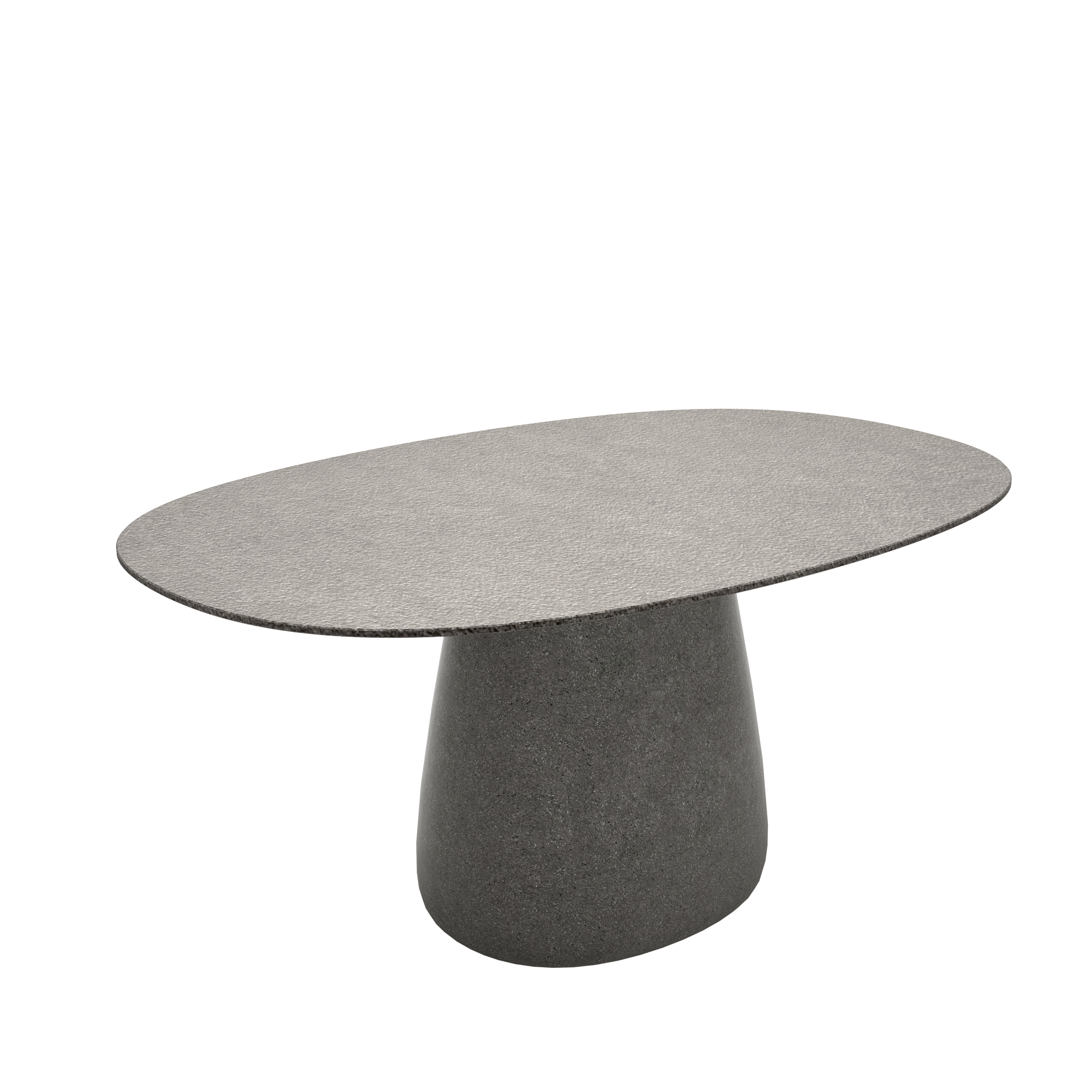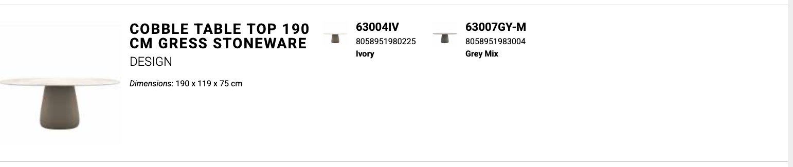 Stół ogrodowy COBBLE zaprojektowany przez Elisę Giovannoni charakteryzuje się centralną podstawą oraz solidnym, owalnym blatem ceramicznym o gr. 12 mm wykonanym z materiały laminam.