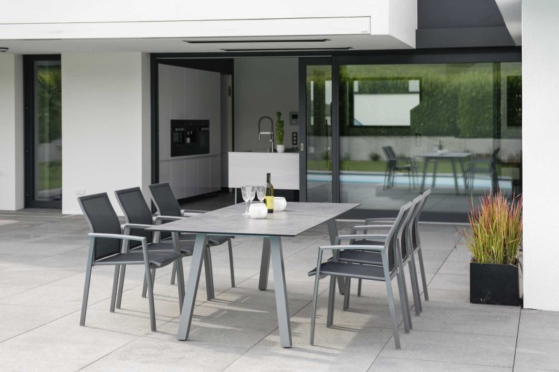 Stół ogrodowy INTERNO posiada blat wykonany z materiału Silverstar 2.0.