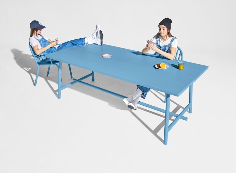 Kiedy zobaczysz szerokie listwy blatu, od razu zgadniesz, co było inspiracją do jego stworzenia: klasyczny stół piknikowy. Fatboy odnowił tę ikonę dodając jej nieco pikanterii.