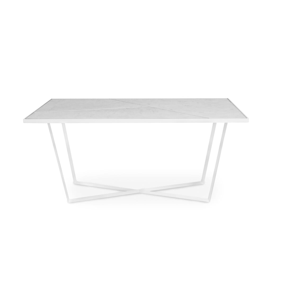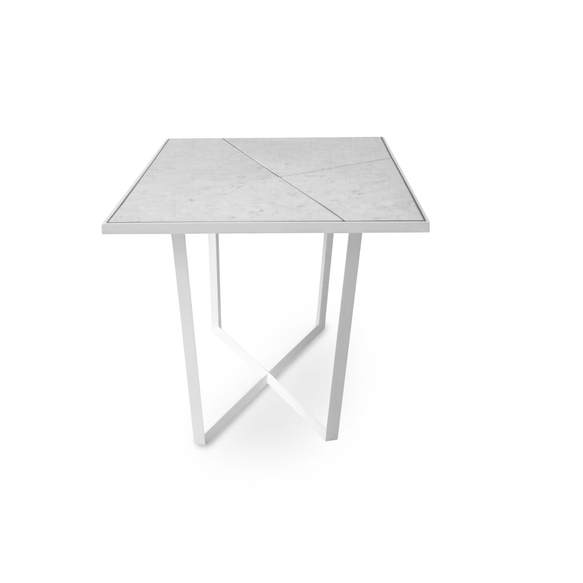Stół ogrodowy zaprojektowano z dbałością o szczegóły. Marmurowy blat znajduje równowagę z metalową konstrukcją malowaną proszkowo, tworząc elegancki i wyrafinowany design.