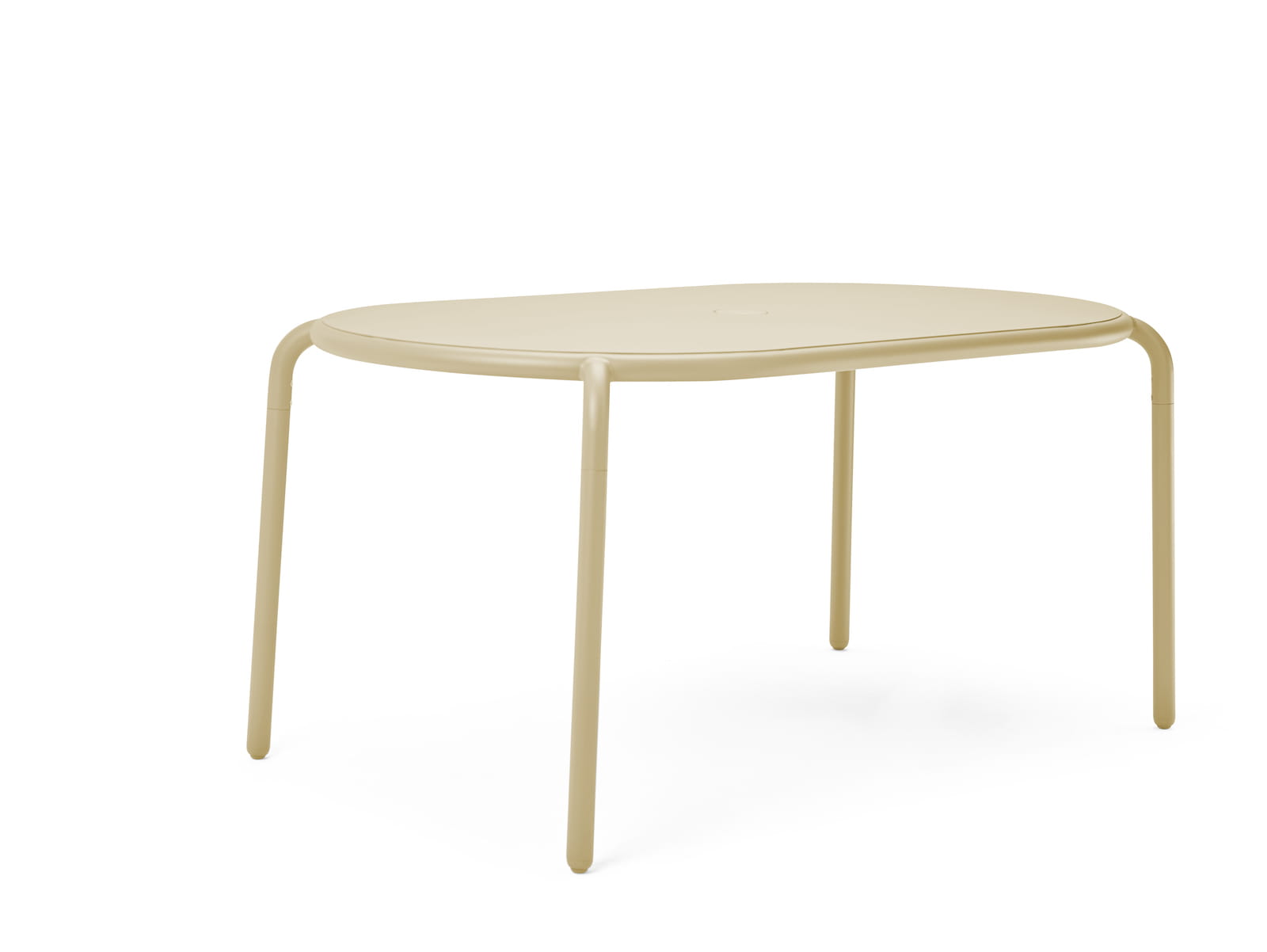 Otwór w środku stołu służy jako uchwyt na parasol w ciągu dnia i może być używany do 3-ramiennego świecznika Toní (odrębny produkt), który przechowasz gdy nie jest używany w specjalnym schowku pod blatem stołu.
