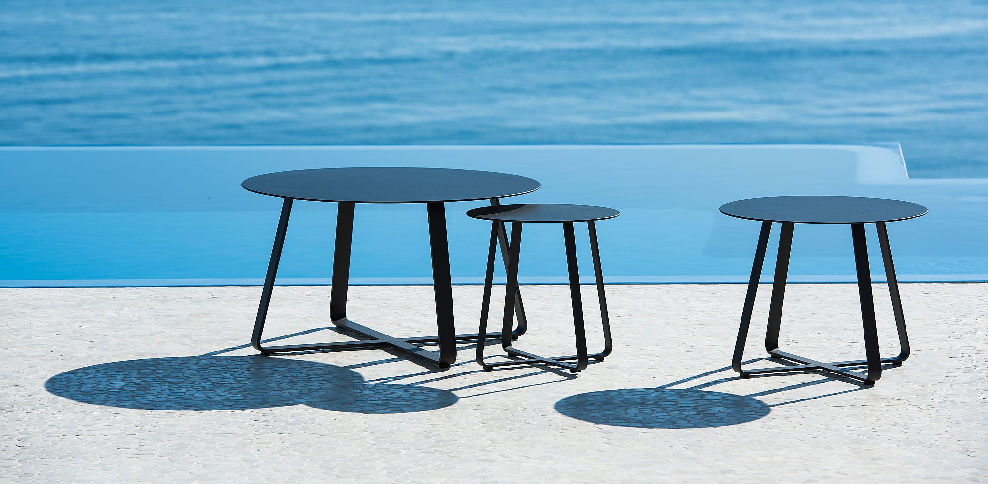 Elko okrągły ogrodowy stolik kawowy wykonany z aluminium. Dostępny w trzech rozmiarach oraz trzech kolorach białym charcoal oraz czarnym.