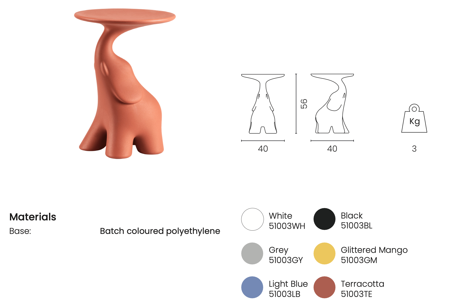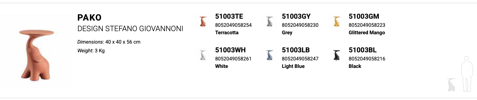 PAKO to mały i kolorowy stolik kawowy w formie słonia, który na swojej trąbie trzyma okrągły blat, na którym można postawić filiżankę kawy lub lampkę wina.
