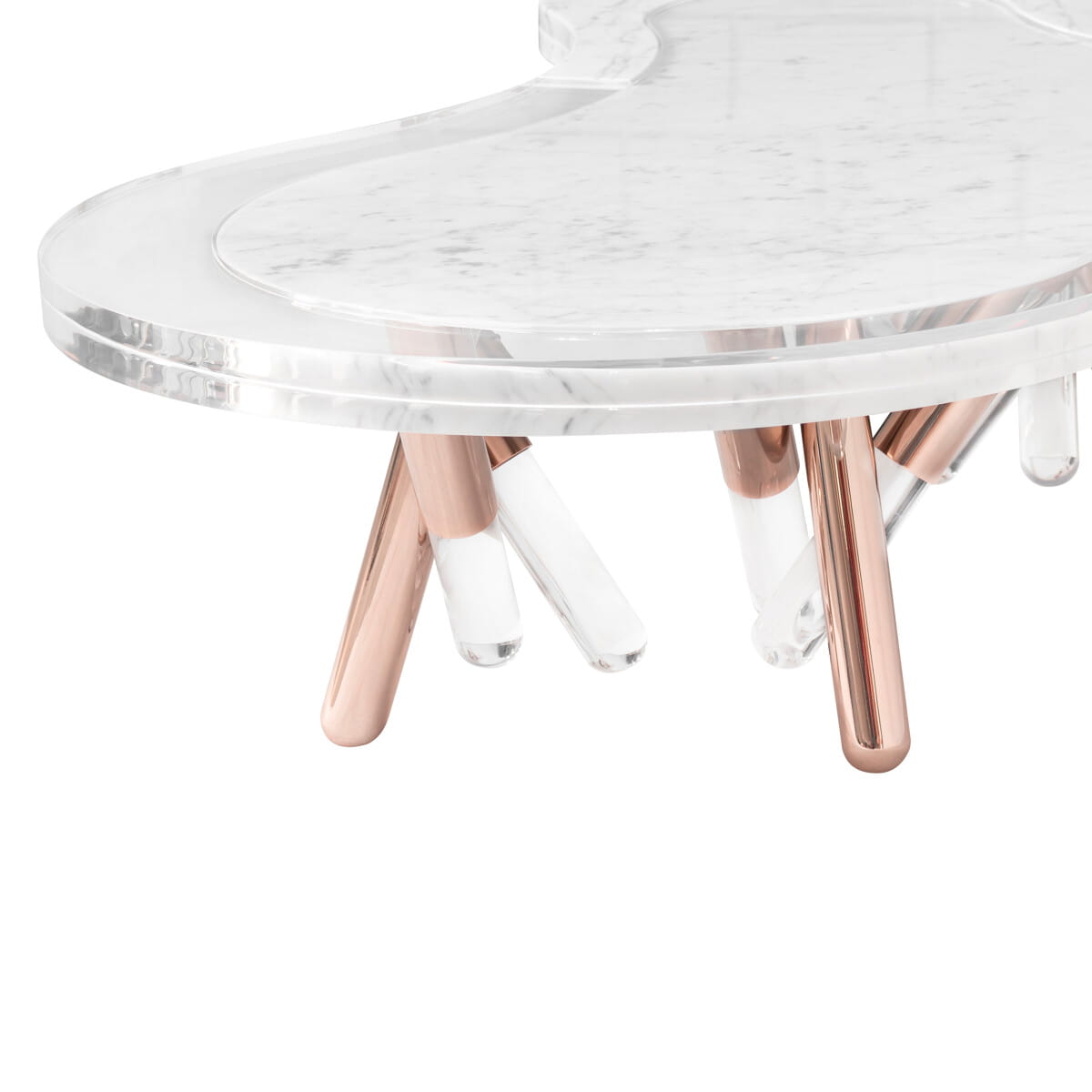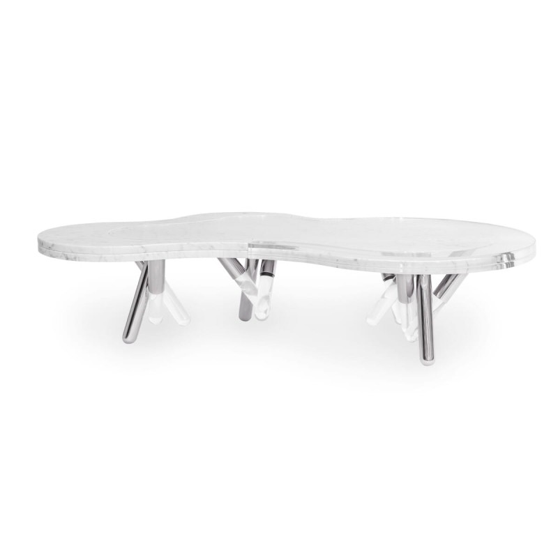 Łącząc lekkość białych, matowych, lakierowanych nóg z luksusem, jaki zapewnia kompozycja akrylu i marmuru, stół NESS jest idealnym wyborem dla wymagających.