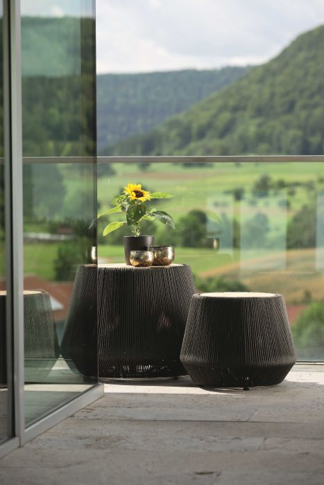 wykonaną z grubych lin. Stolik występuje w dwóch rozmiarach przez co wyglada jeszcze lepiej w parze