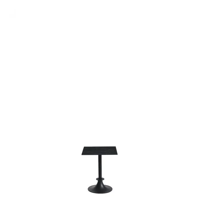 Aluminiowa podstawa malowana na kolor czarny i kolumna z anodowanego na czarno aluminium, blat z czarnego marmuru Marquina.