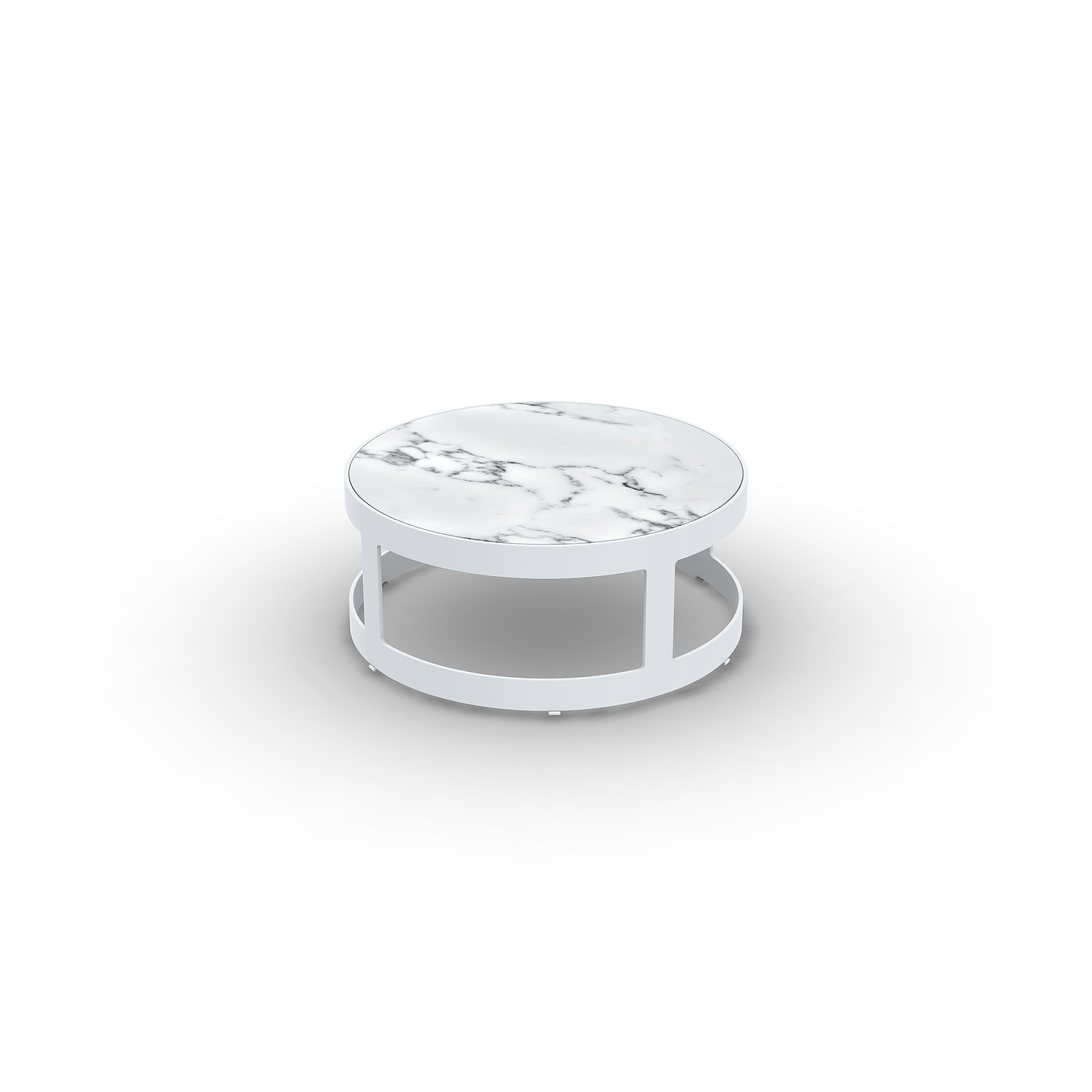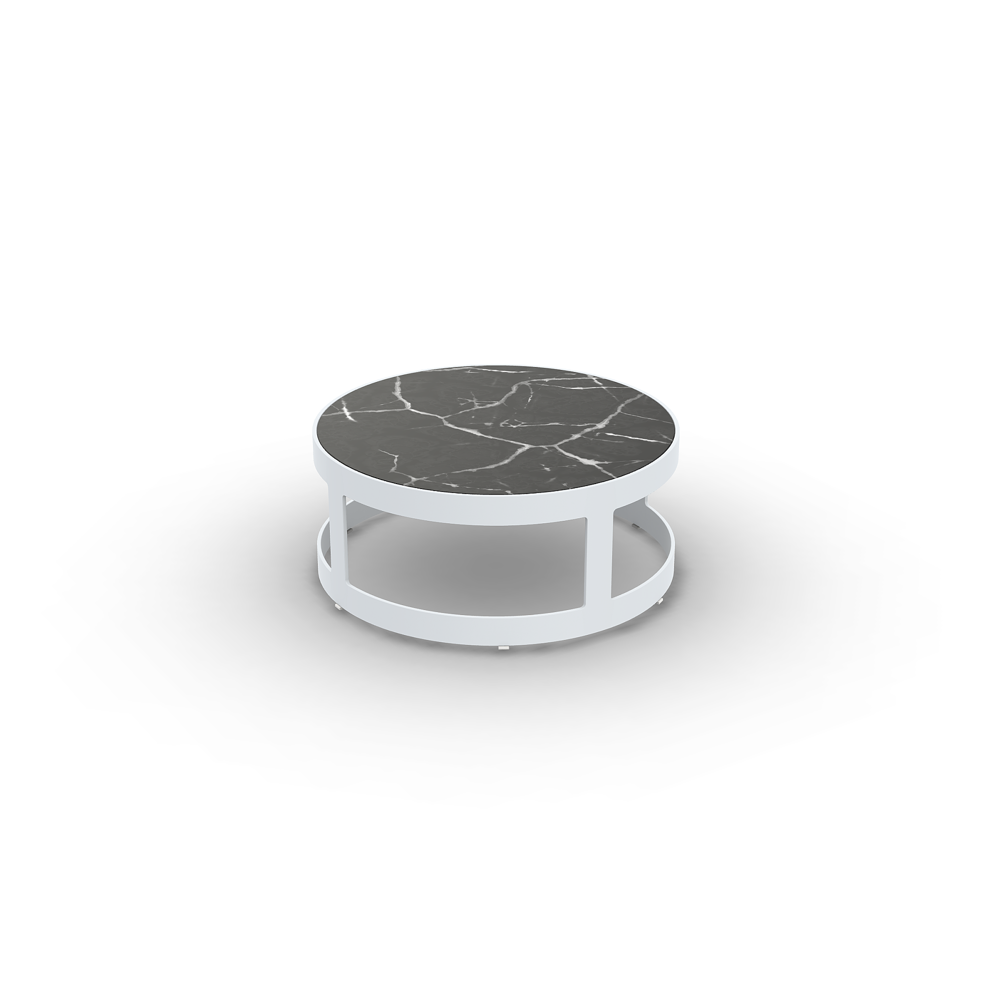Uniwersalny zestaw stolików kawowych Burford. Znakomicie równoważą lekką, przewiewną ramę z ceramicznym lub aluminiowym wykończeniem blatu, dostępnymi w różnych kształtach i kombinacjach kolorystycznych.