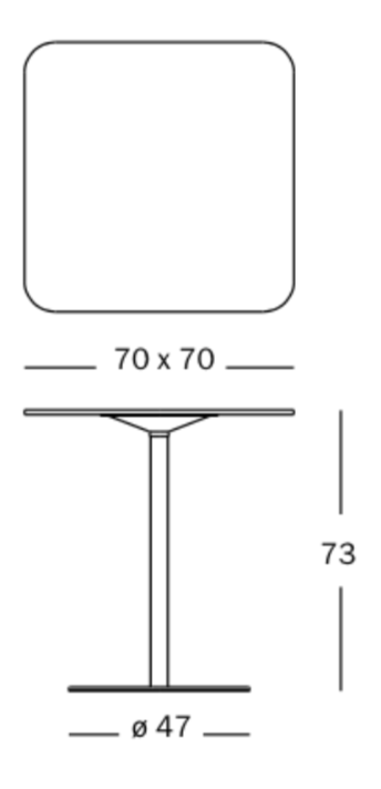 Prosty design składający się z blatu okrągłego lub kwadratu z zaokrąglonymi narożnikami