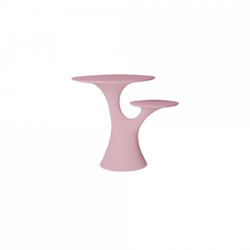 Ten stolik ogrodowy to małe drzewo z blatami na dwóch poziomach.