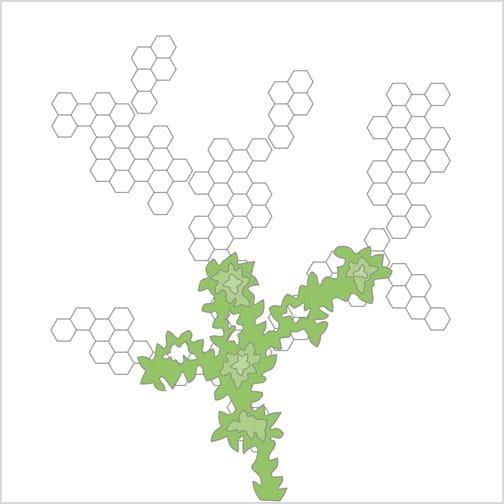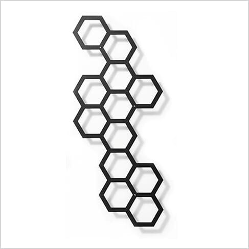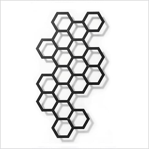 Łączy w sobie heksagonalną strukturę plastra miodu, który można znaleźć w przyrodzie, z surowym kształtem geometrycznym.
