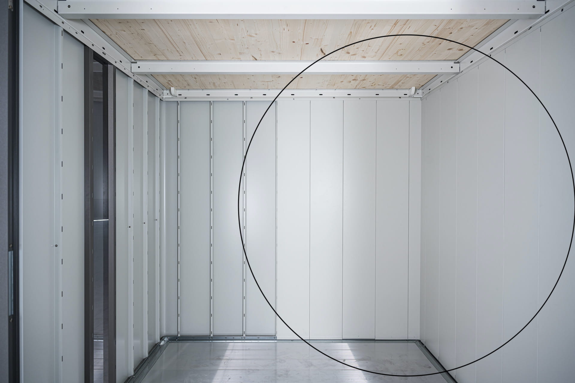 Domek ogrodowy Neo może zostać wyposażony w dodatkowe panele wewnętrzne, które nie tylko wpływają na walory estetyczne domku ale także umożliwiają zastosowanie izolacji i tym samym docieplenie ścian domku.
