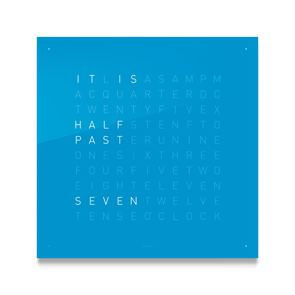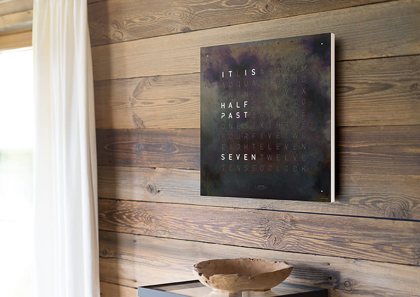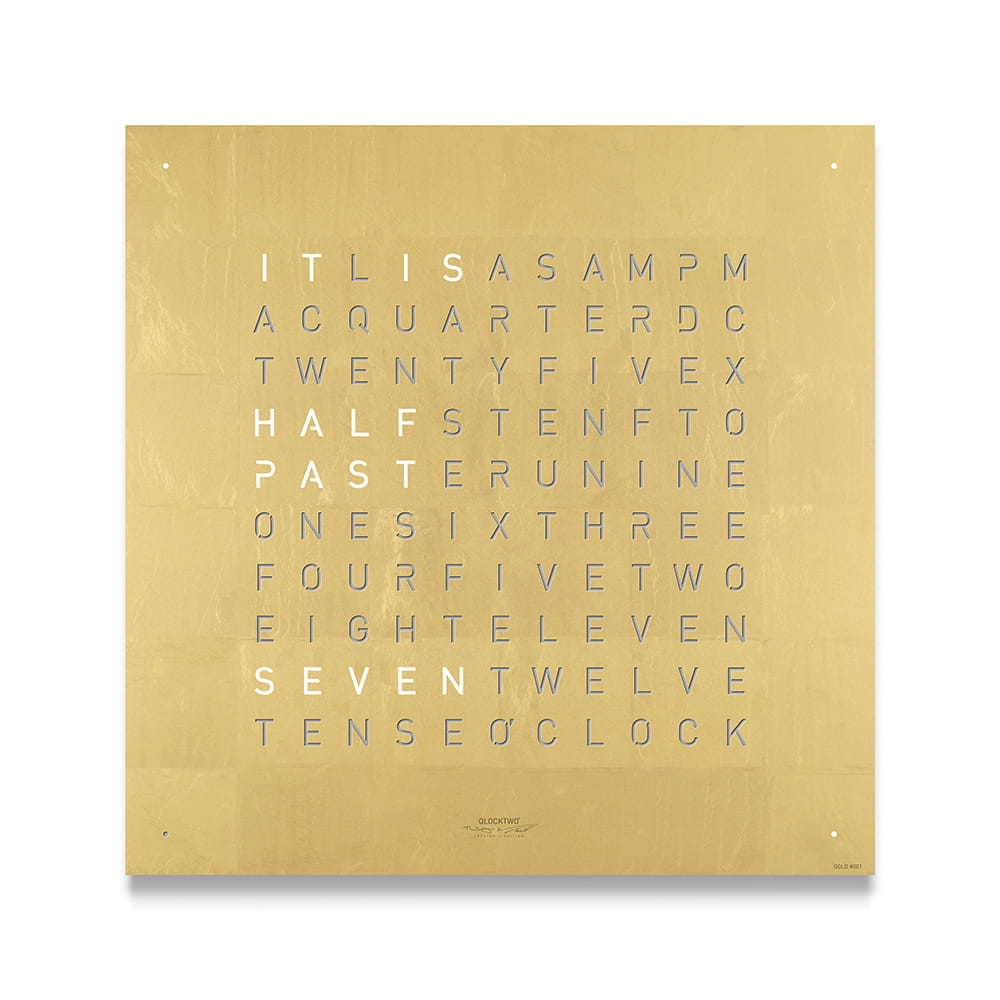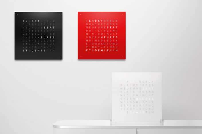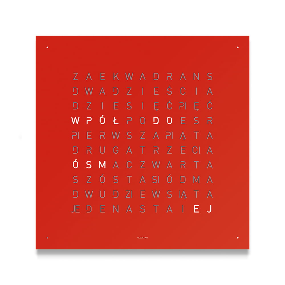 Zegar QLOCKTWO wskazuje czas typograficznie w ponad 20 językach (wybrane modele także w wersji polskiej).